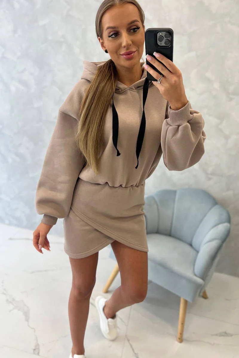 Představujeme vám módní šaty. Šaty mají kapuci. Šaty s obálkovým spodním dílem. Šaty jsou vyrobeny z vysoce kvalitní zateplené tkaniny. Velikost je univerzální a vyhovuje dámám, které nosí velikost S, M nebo L.