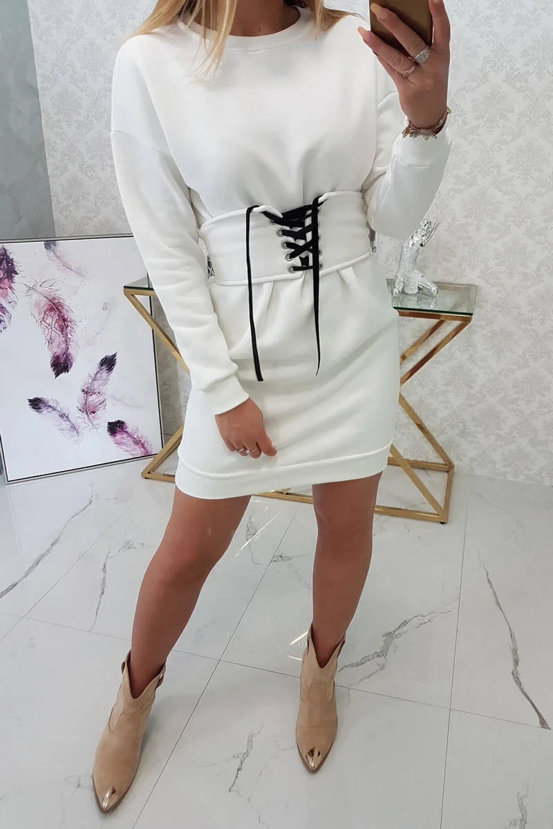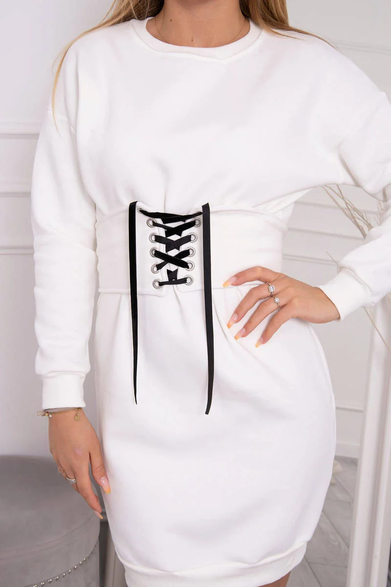 Zateplené šaty s ozdobným páskem ecru