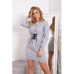 Zateplené šaty s ozdobným páskem šedé