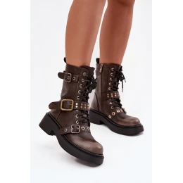 Zateplené workery dámské s přezkami hnědé model 21715308 - Boto