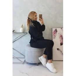 Prezentujemy Państwu komplet bluzy i spodni. Bluza posiada kaptur oraz golf. Spodnie posiadają gumę w pasie. Komplet wykonany jest z ocieplanego materiału. Rozmiar jest uniwersalny i będzie odpowiedni dla Pań w rozmiarze S, M lub L.