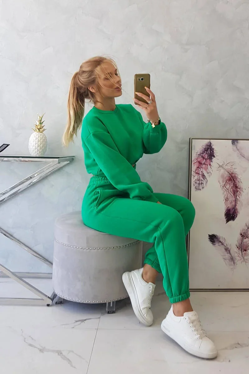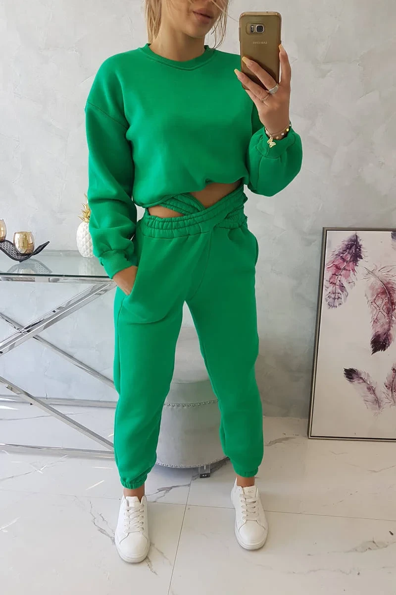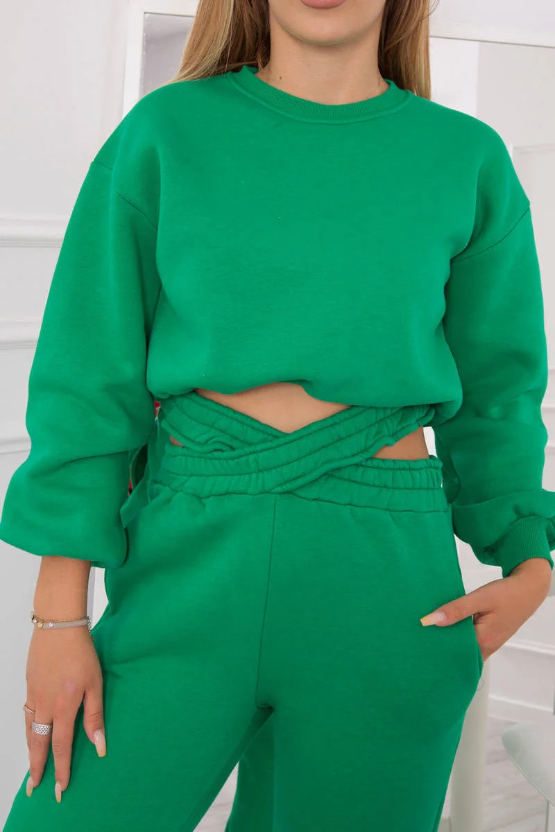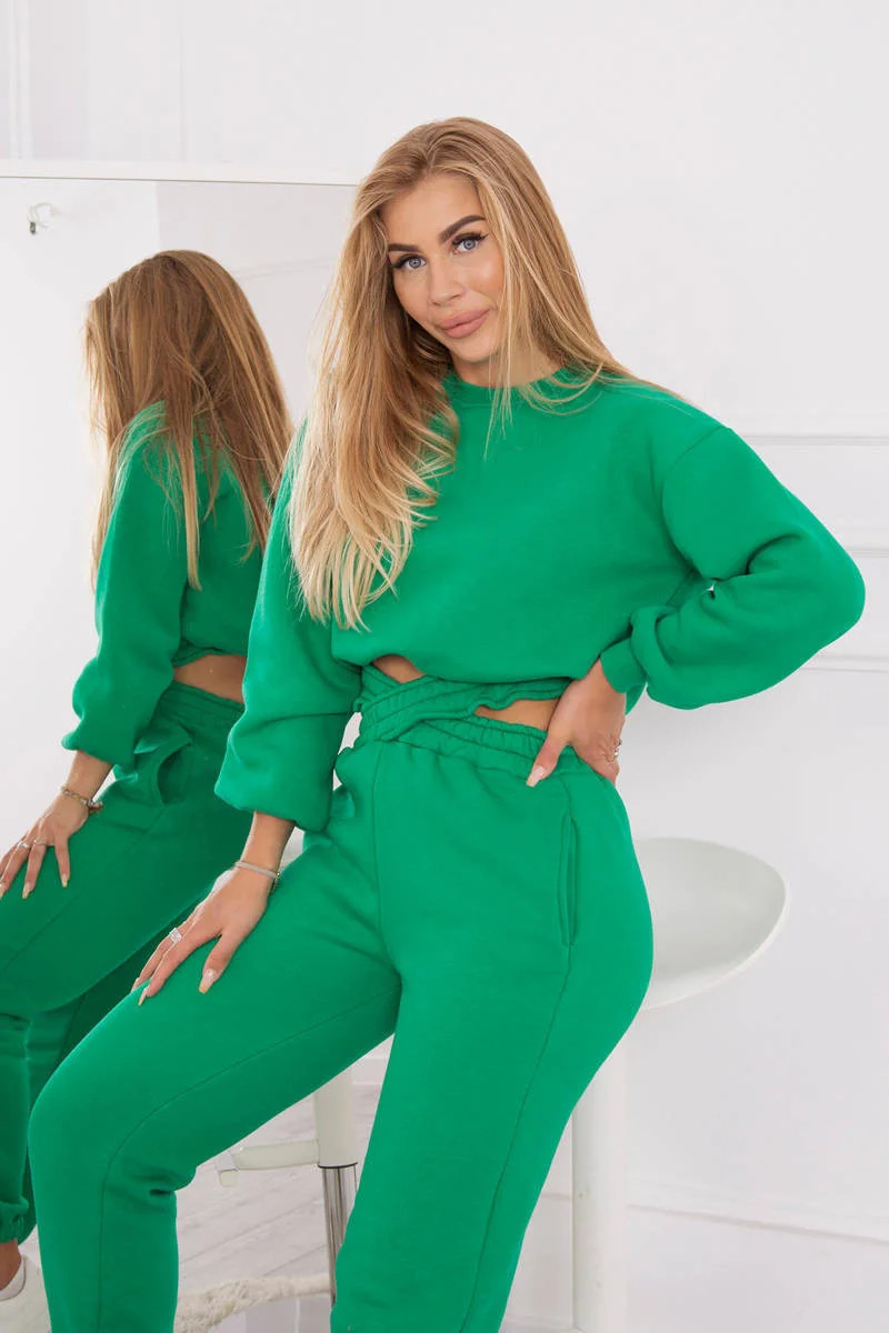 Zateplený set s krátkou mikinou zelený