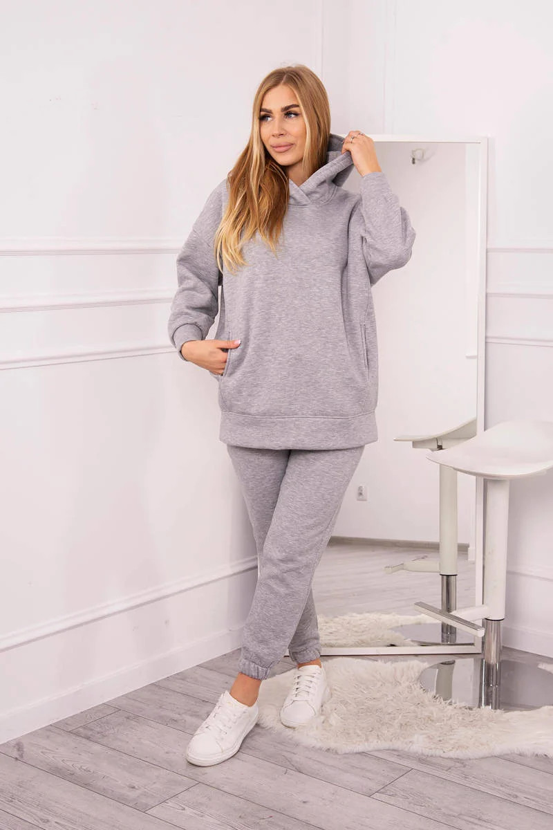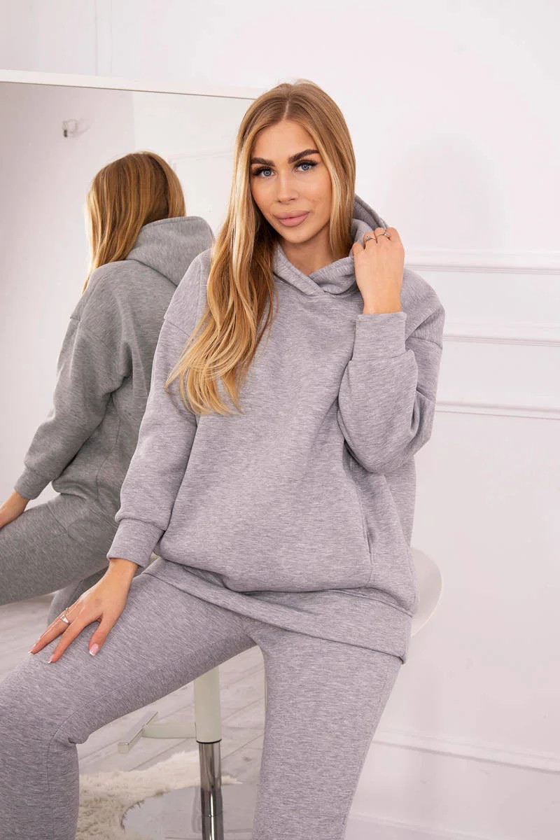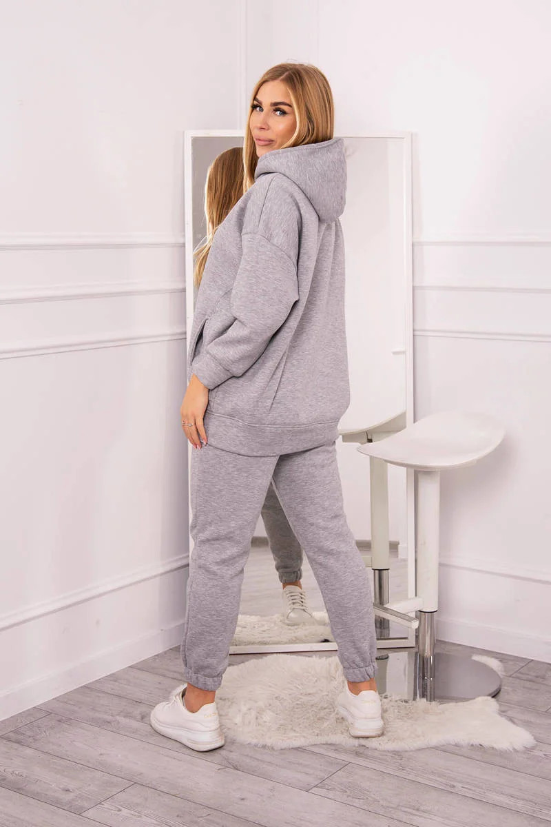 Zateplený set s mikinou s kapucí šedý