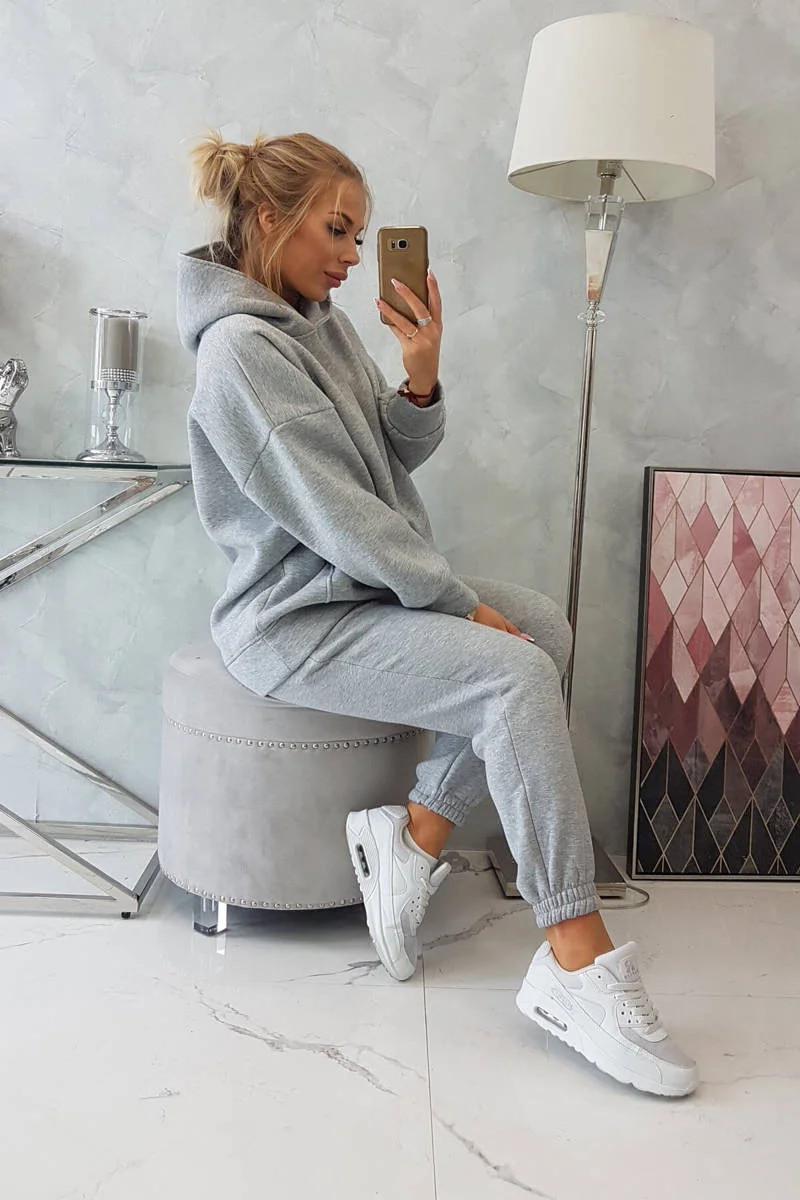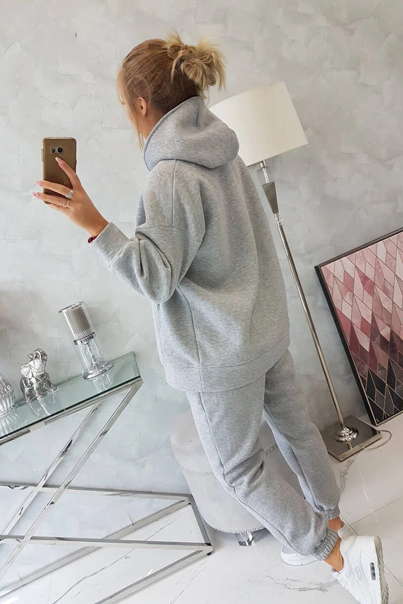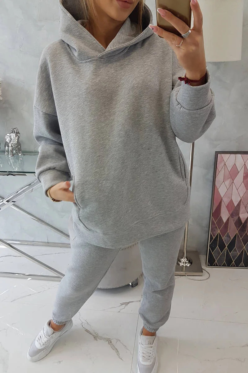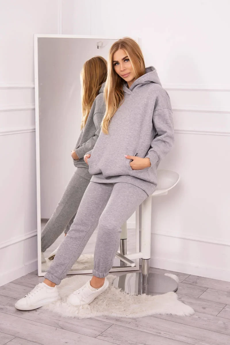 Zateplený set s mikinou s kapucí šedý