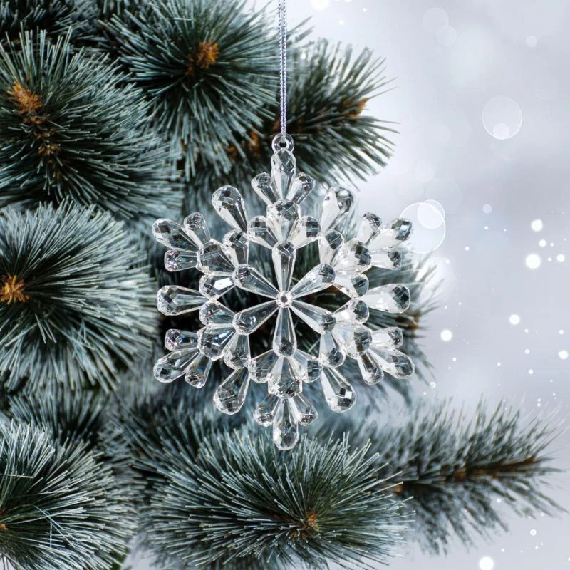 Závěsná dekorace Závěsná sněhová vločka 12x12 CM z akrylu je lehká a nápadná dekorace, která krásně odráží světlo a dodá sváteční, zimní atmosféru každé místnosti.