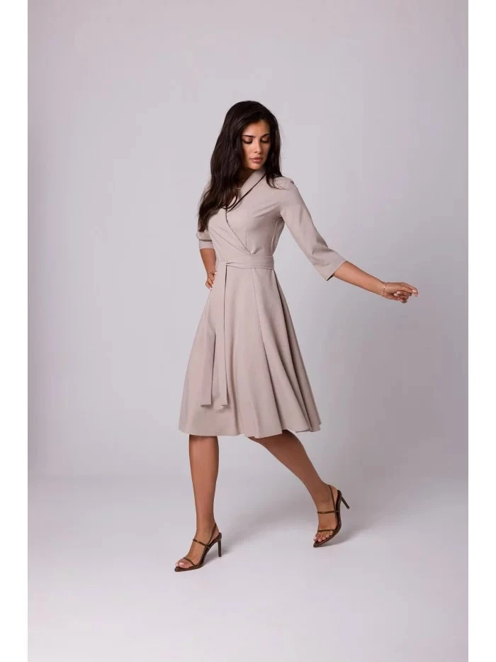 Přidání recenze k Zavinovací šaty se šálovým límcem B255 - béžové - BEwear