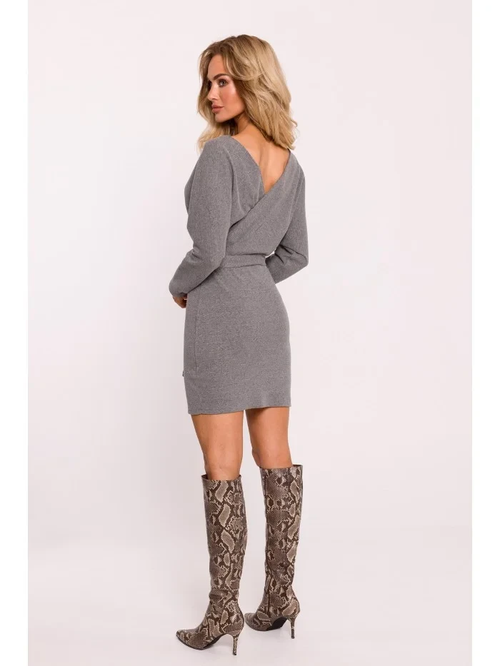 Zavinovací šaty z úpletu šedý melír model 20515124 - Moe
