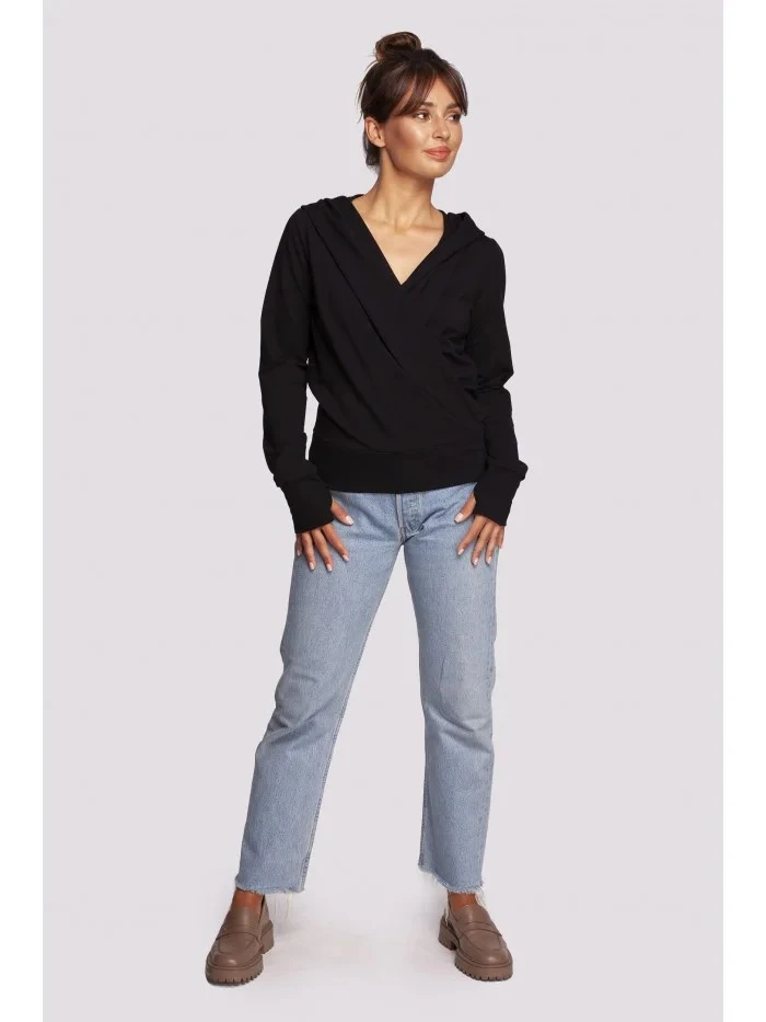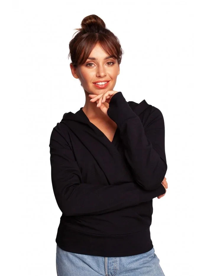 Zavinovací svetr s kapucí B246 černý - BeWear