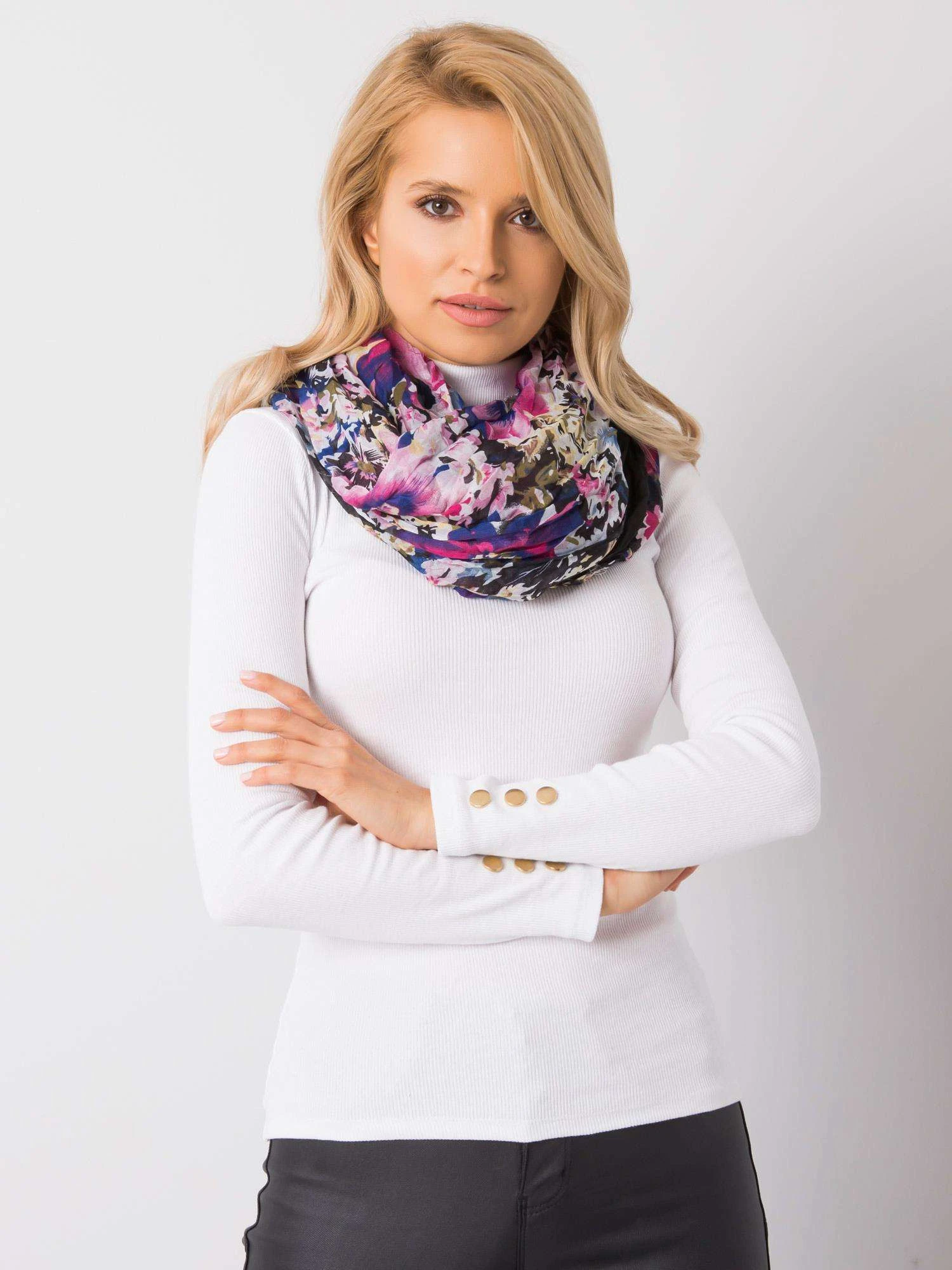 Šála s květinovým potiskem černá.