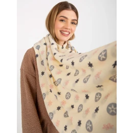 Dámský šátek v barvě ecru s potisky .