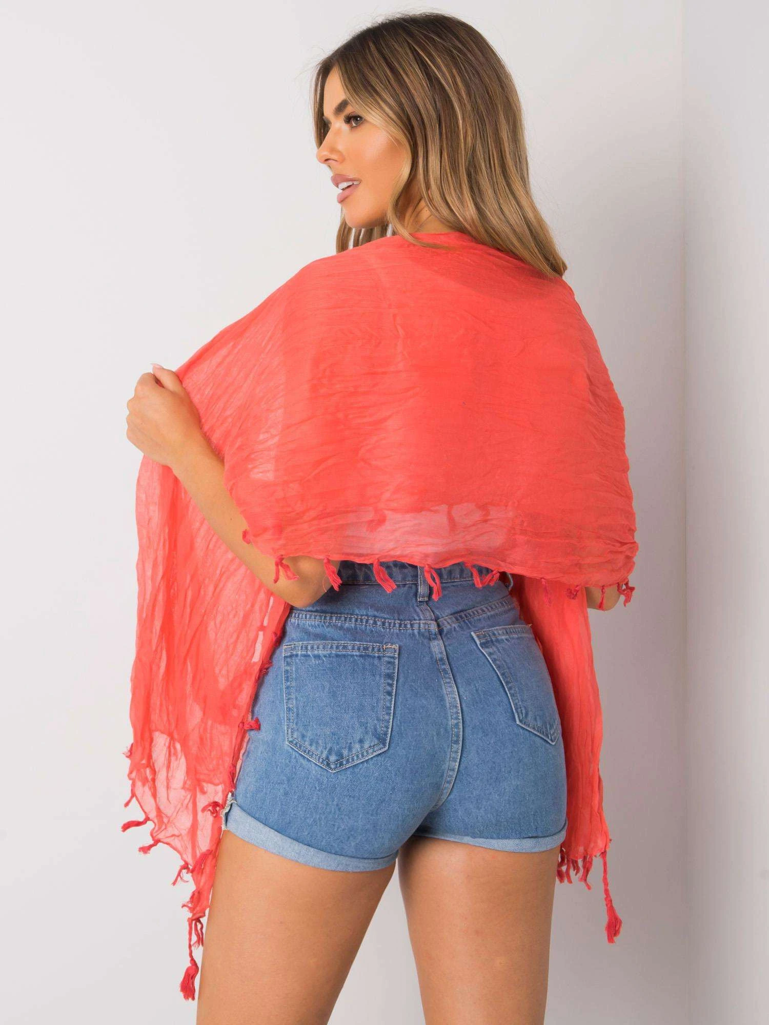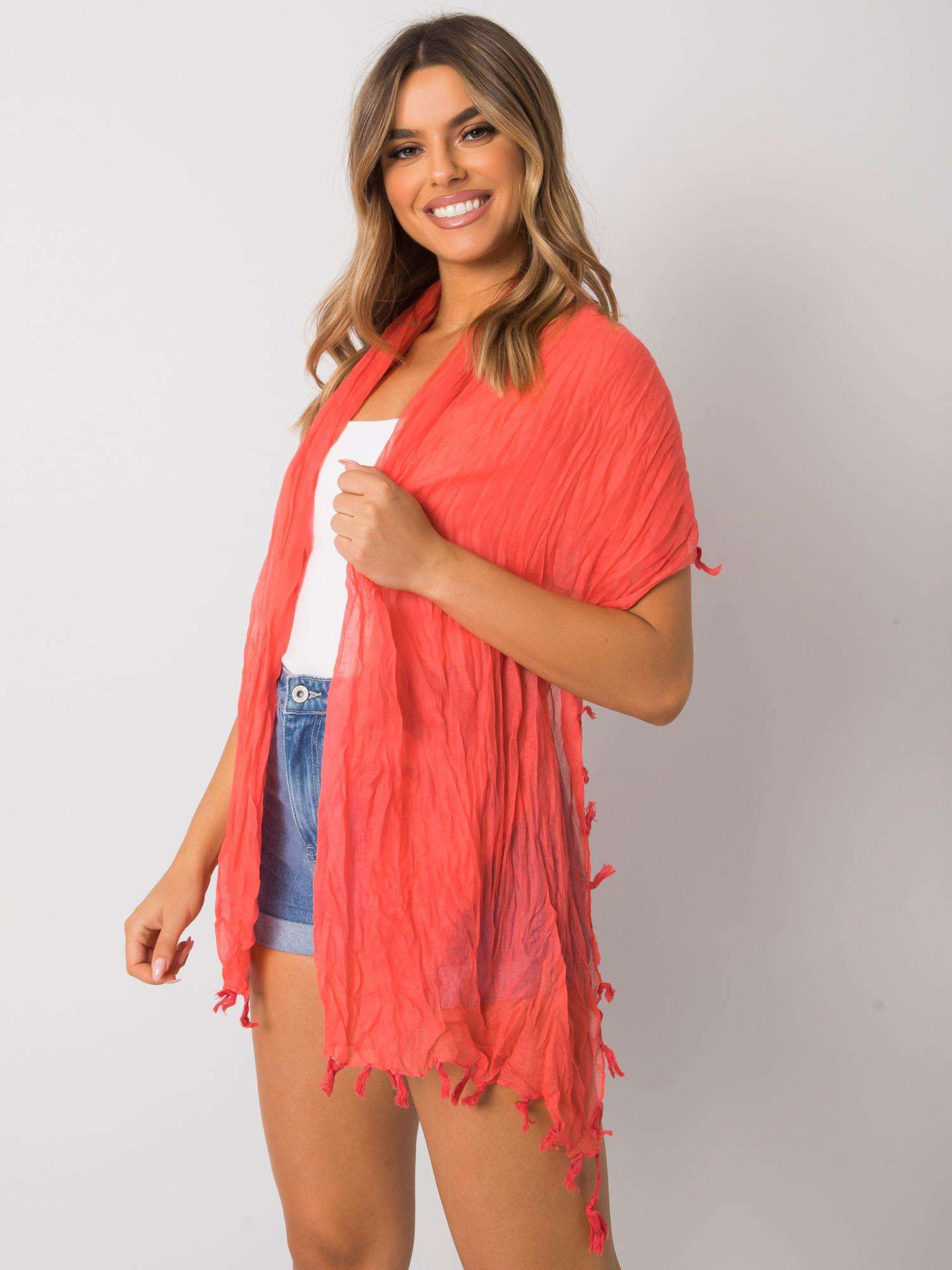 Korálová dámská šála se střapci.