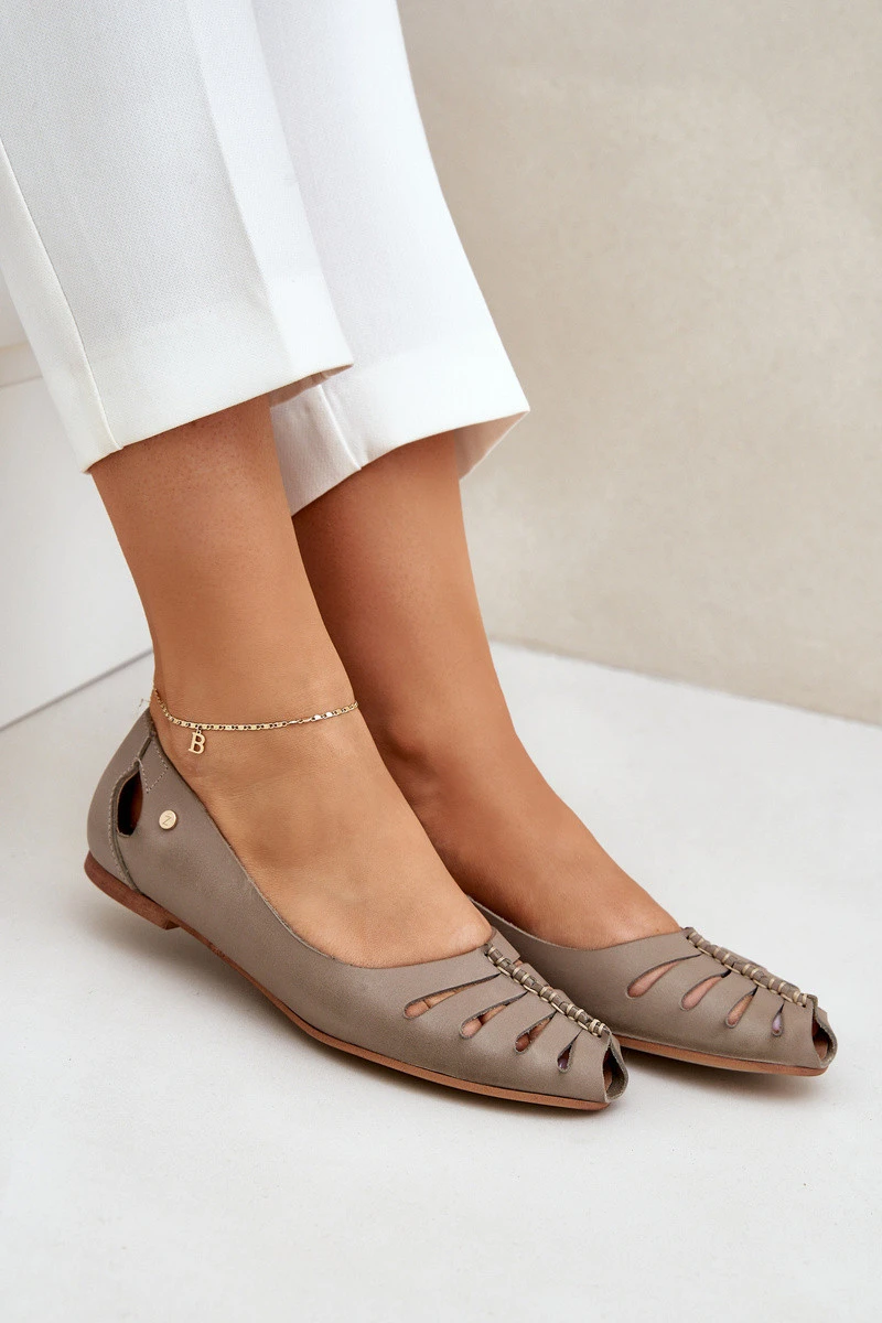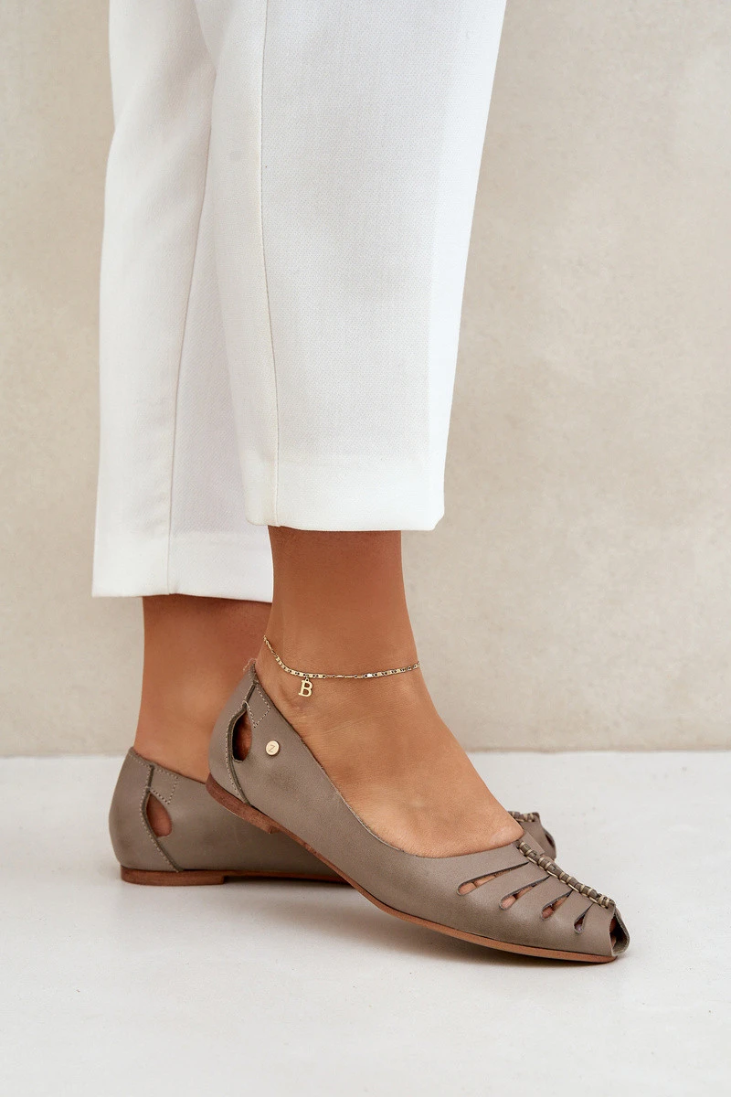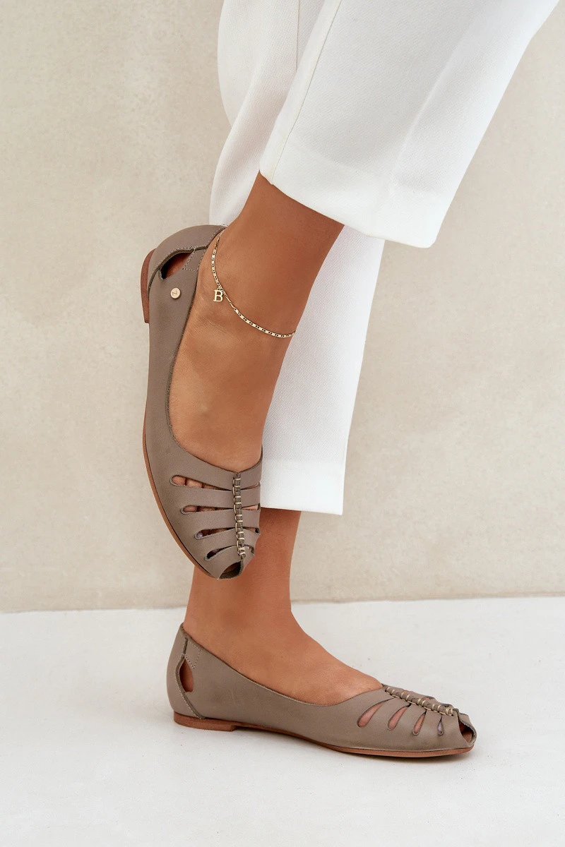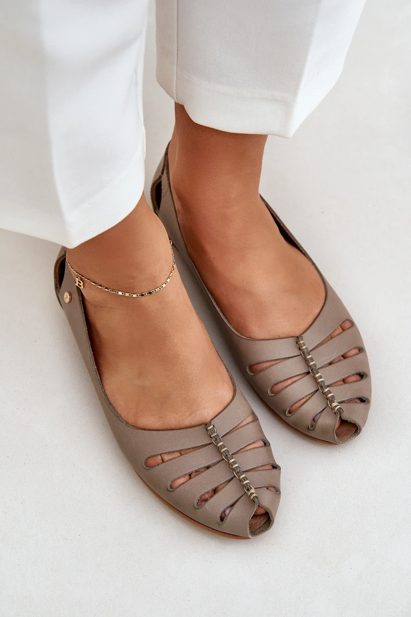 Zazoo 10009 Pohodlné dámské kožené baleríny tmavě béžové