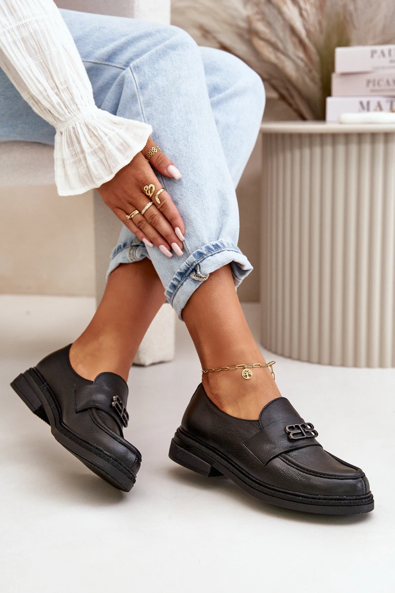 Elegantní dámské polobotky vyrobené z přírodní kůže jsou kombinací stylu a pohodlí. Jsou usazeny na plochém podpatku. Zakulacené špičky dodávají jemnost. Pásek s malou ozdobou představuje delikátní, dekorativní prvek. Tento model navíc disponuje zpevněným patkem, což zajišťuje stabilitu a podporu pro nohu. Ideální pro každodenní i formálnější stylizace. Při výběru velikosti se řiďte tabulkou velikostí.