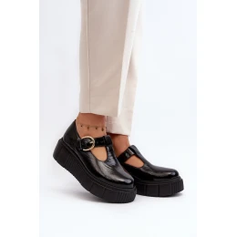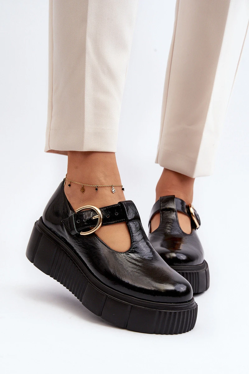 Zazoo 20102 Moderní Lakové Polobotky na Masivní Platformě Černé