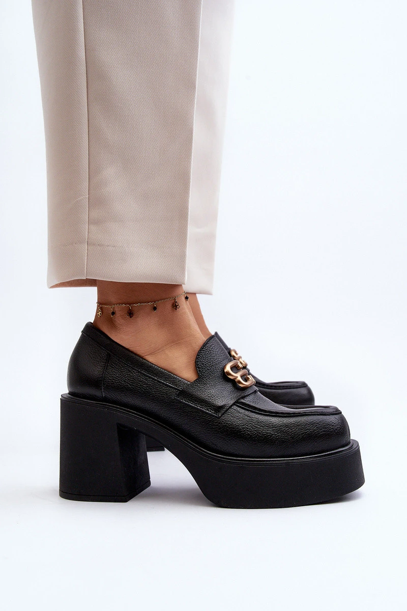 Dámské lodičky na podpatku s vrchní částí vyrobenou z přírodní kůže. Umístěné na tlusté podrážce a podpatku ve formě masivního sloupku. Tento model má zaoblené špičky. Kožená stélka zajistí pohodlí během nošení. Vpředu pásek a ozdoba. Při výběru velikosti se řiďte tabulkou velikostí.