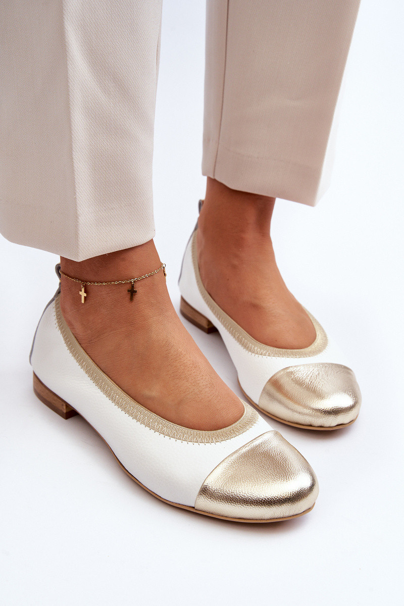 Zazoo 2890 Kožené baleríny bílo-zlaté