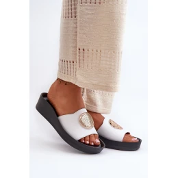 Zazoo 2920 Kožené Dámské Žabky Na Klinu S Zlatým Detailní Bílé Zazoo 2920
