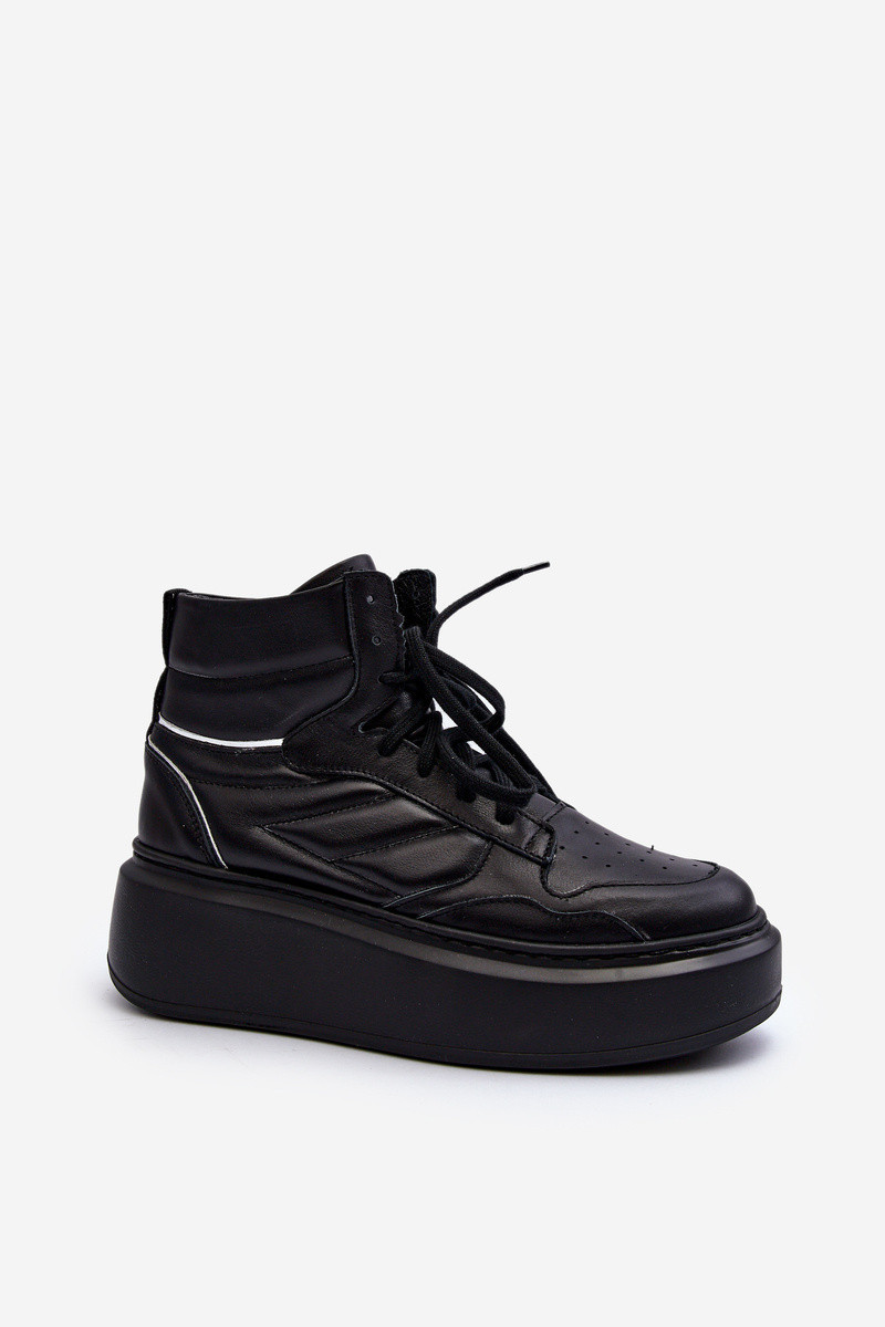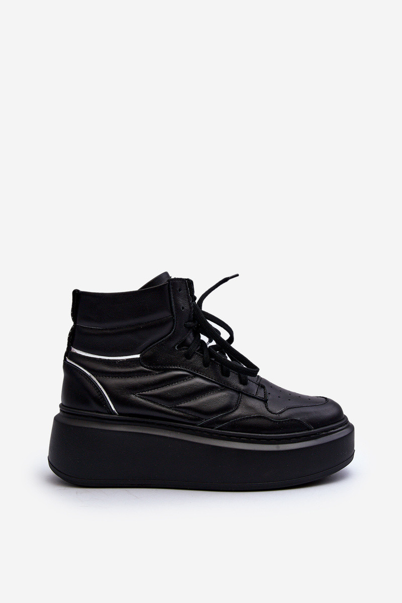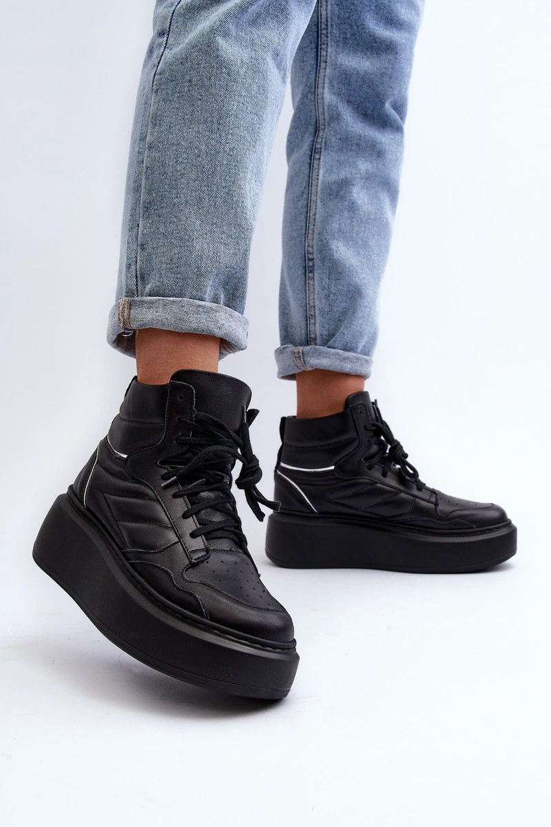 Zazoo 3392/X Dámské Kožené Sportovní Boty na Platformě Černé
