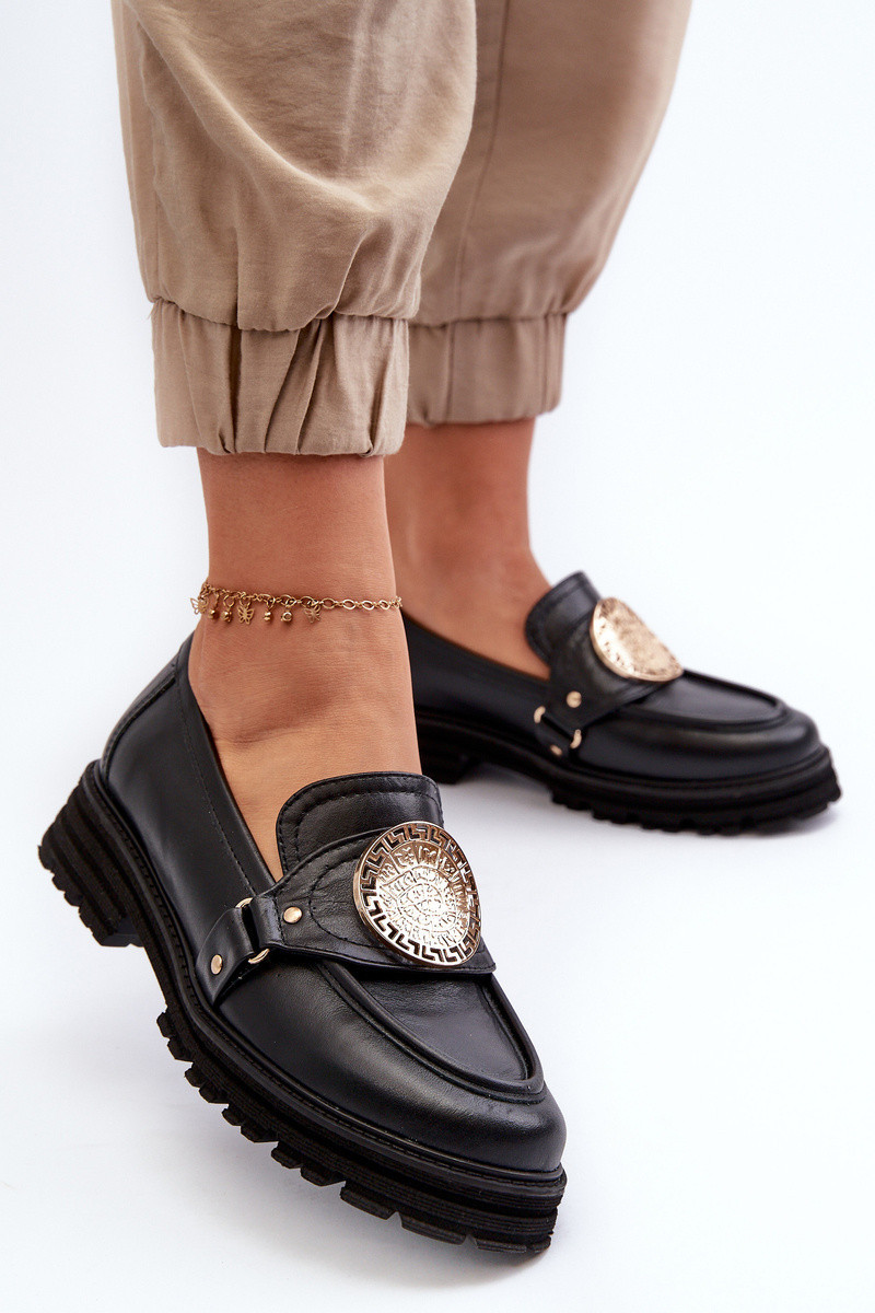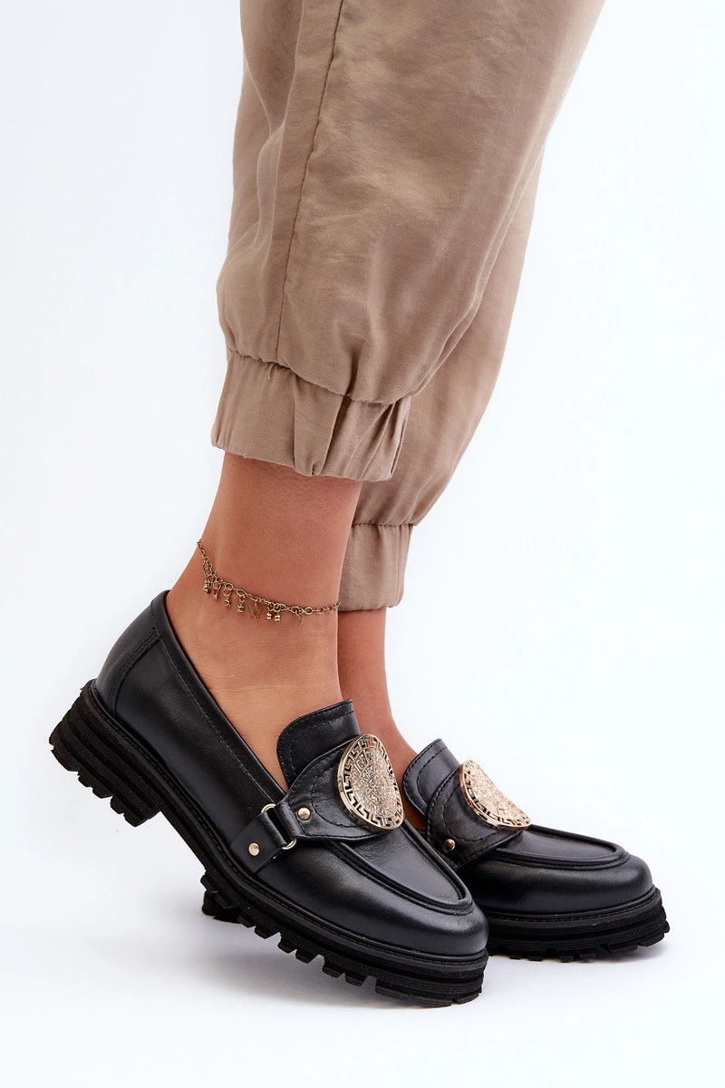 Zazoo 3485 Dámské mokasíny s zlatým ozdobou Přírodní kůže