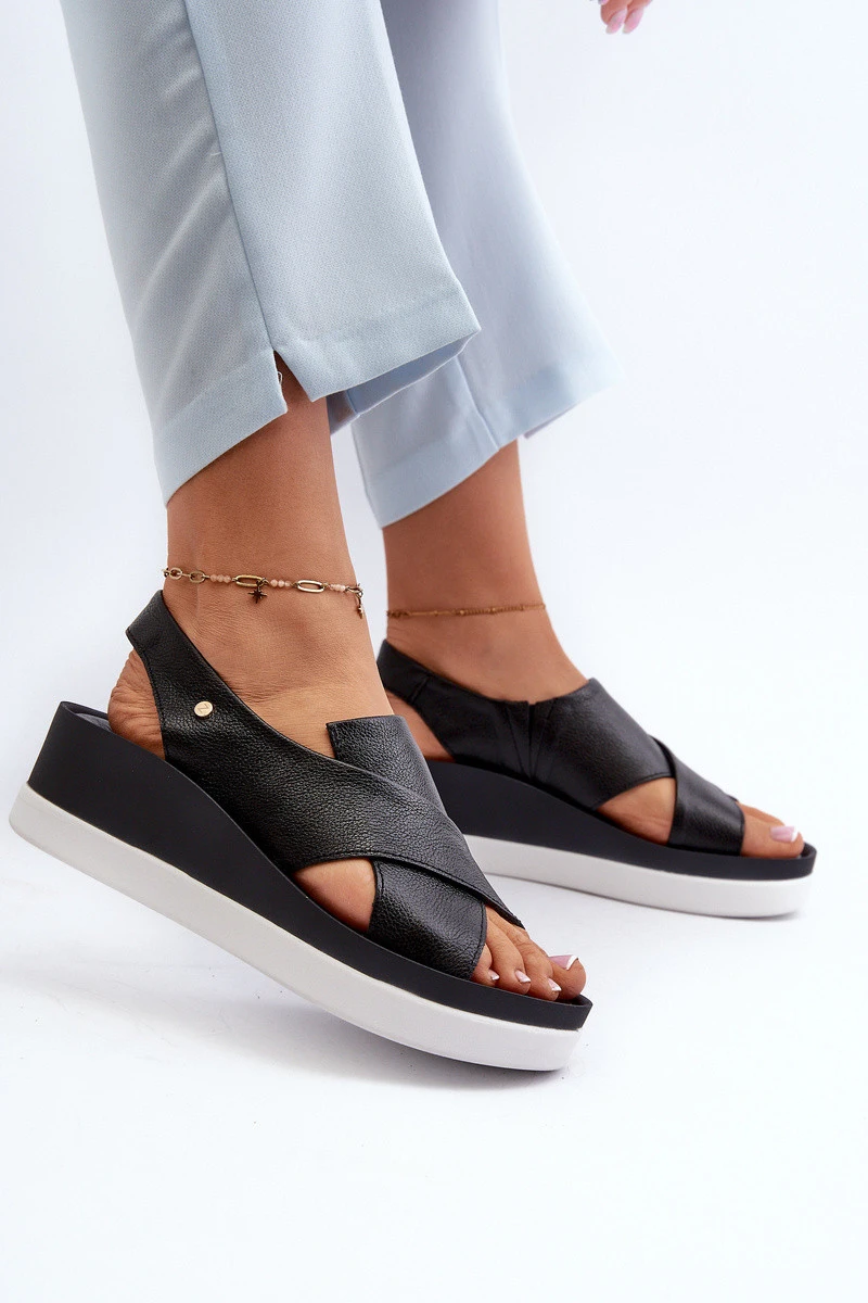 Zazoo 40256 Kožené sandály na klíně černé