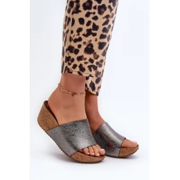 Zazoo 40291 Kožené Dámské Žabky na Korkové Platformě Grafitové