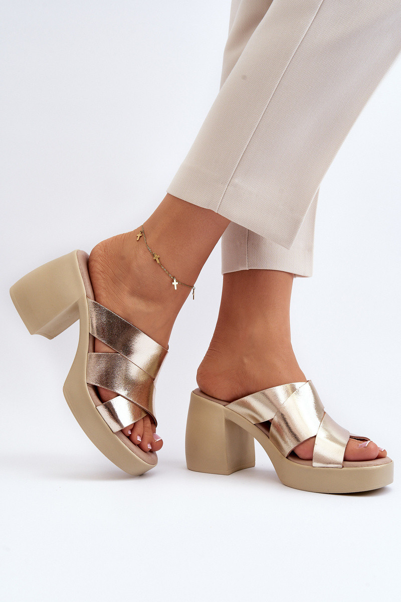Zazoo 40373 Kožené Klapky Na Podpatku Zlaté