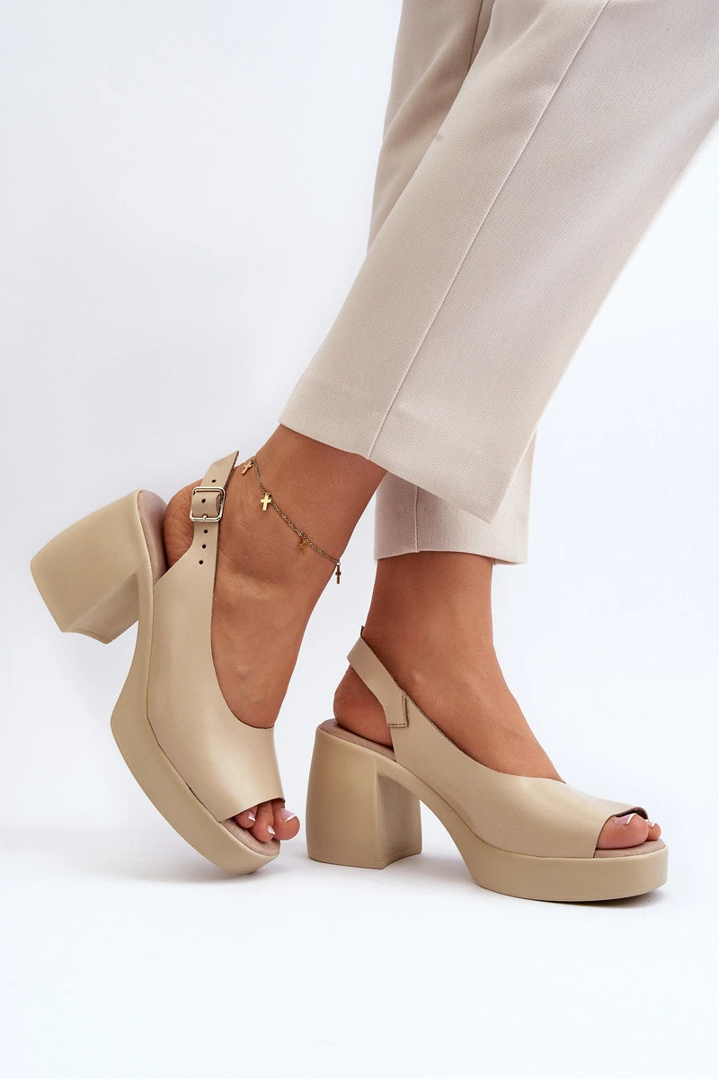 Zazoo 40376 Kožené Sandály Na Masivní Podpatku Bežové