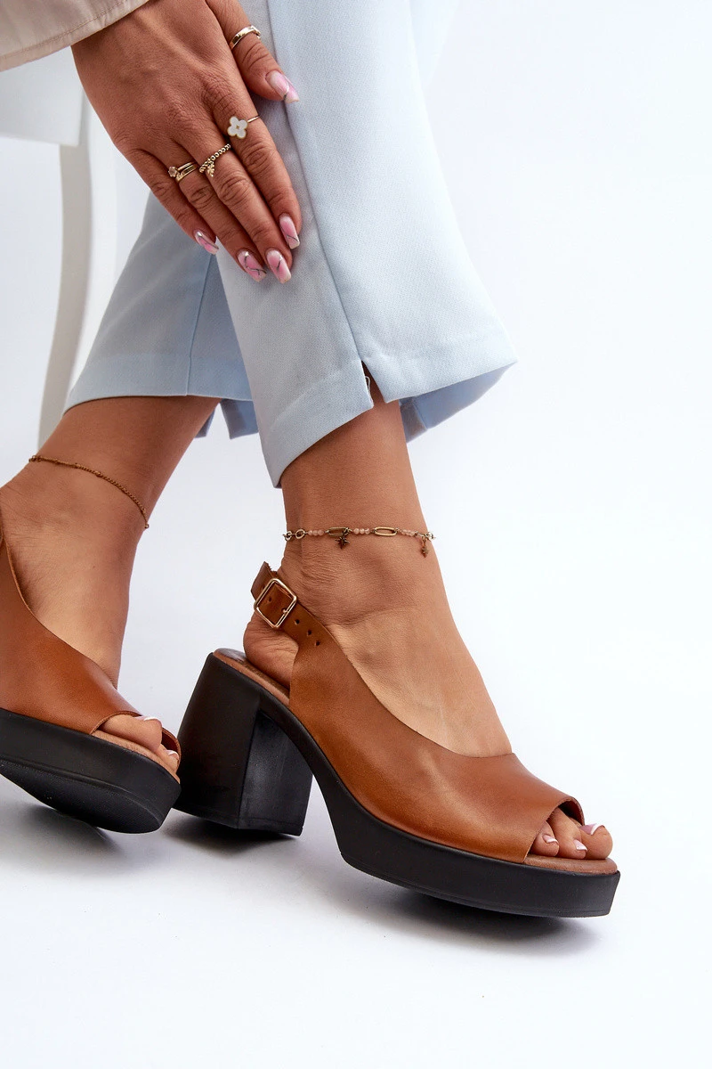 Dámské sandály vyrobené z přírodní kůže. Usazeny na masivním podpatku ve tvaru sloupku. Odkryté špičky. Zapíná se na nastavitelný pás s přezkou. Měkká kůží stélka zajistí pohodlí během nošení. Tento moderní střih určitě využijete k mnoha stylizacím! Při výběru velikosti se řiďte tabulkou velikostí.