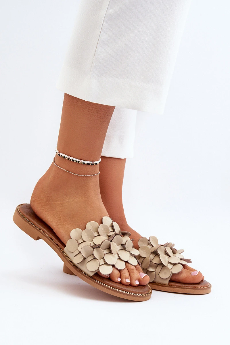 Zazoo 40381 Dámské Kožené Žabky Na Ploché Podrážce Beige