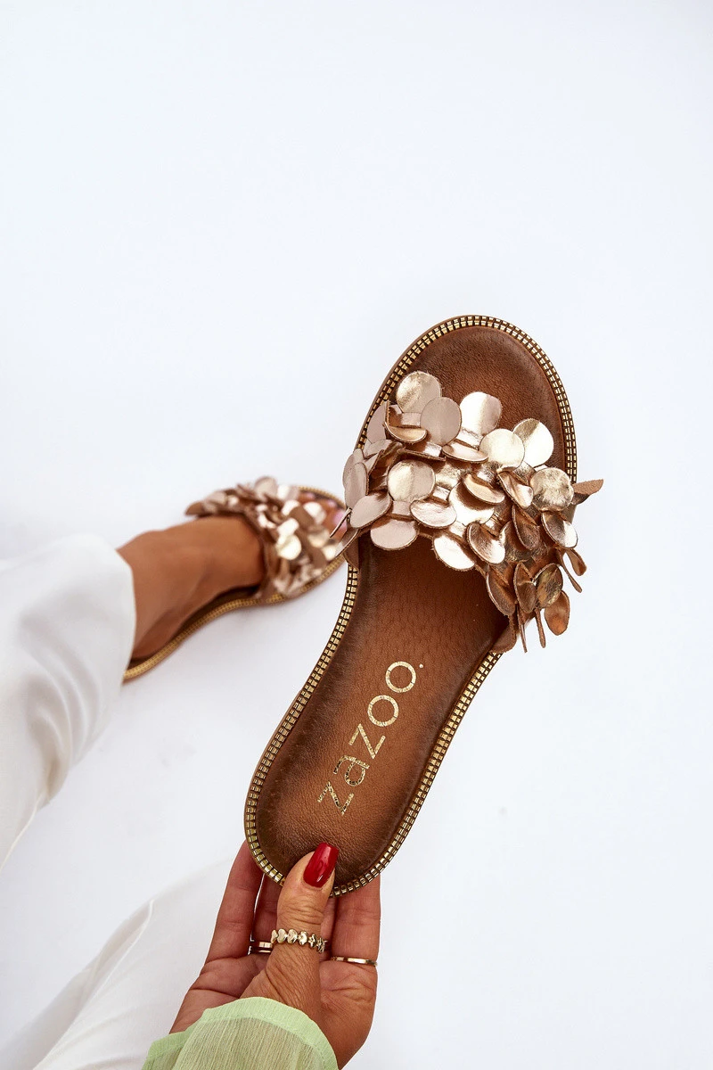 Zazoo 40381 Dámské Kožené Žabky Na Ploché Podrážce Zlaté