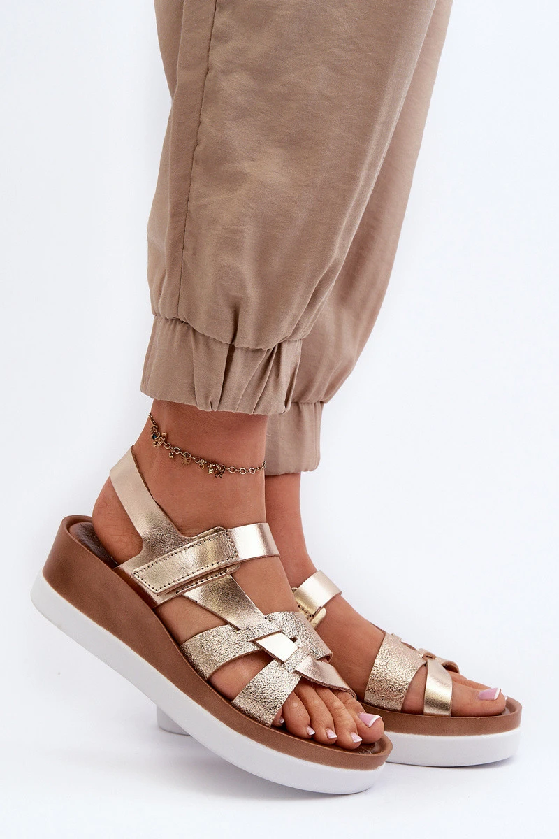 Zazoo 40397 Dámské Kožené Sandály Na Platformě Zlaté