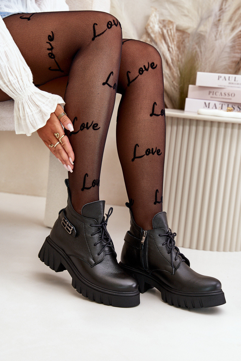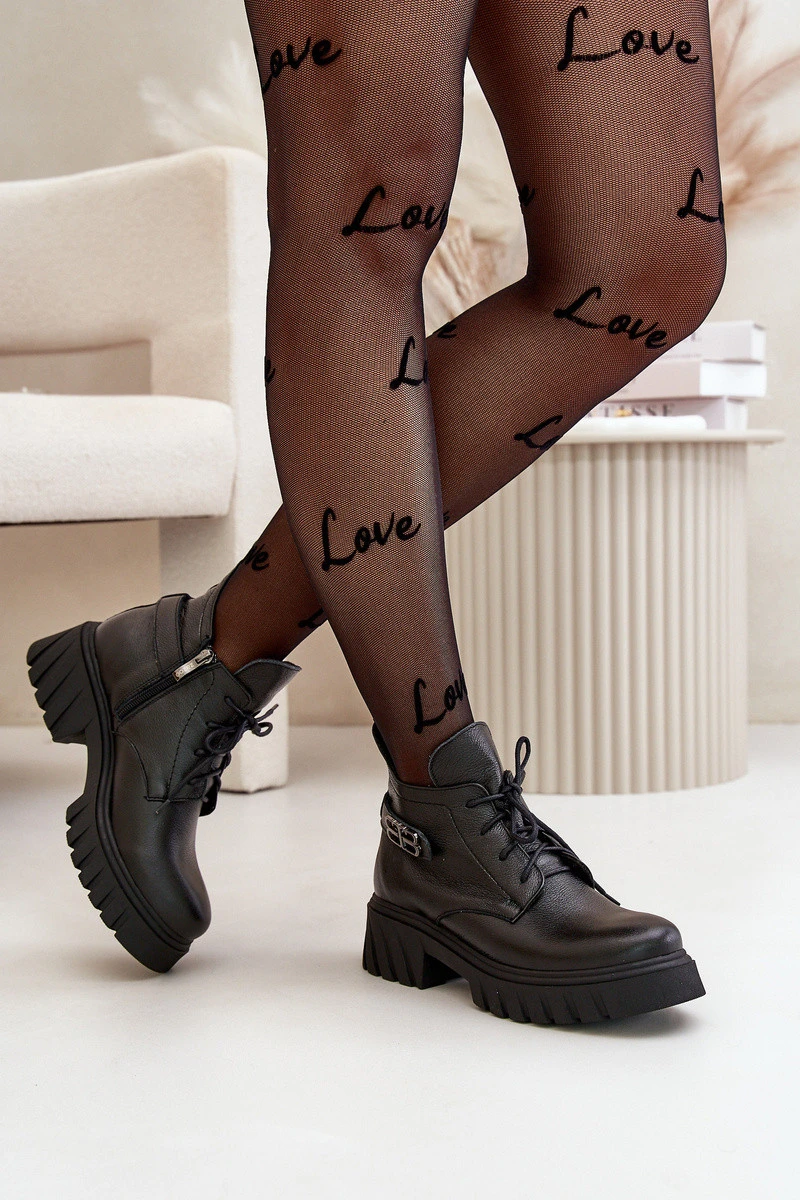 Dámské boty vyrobené z přírodní kůže. Zapínají se na zip a navíc mají šněrování. Špičky jsou zaoblené. Interiér byl zateplen měkkým plstí, která zajišťuje teplo i v nejchladnějších dnech. Plst chrání nejen před chladem, ale také zvyšuje pohodlí nošení díky své měkkosti a izolačním vlastnostem. To dělá z bot ideální volbu pro podzimní a zimní měsíce, zaručující nejen stylový vzhled, ale také komfort a ochranu před chladem. Tyto boty jsou vynikajícím spojením klasického stylu a moderních řešení, která se hodí do různých stylizací, od každodenních po elegantnější. Při výběru velikosti se řiďte tabulkou velikostí.