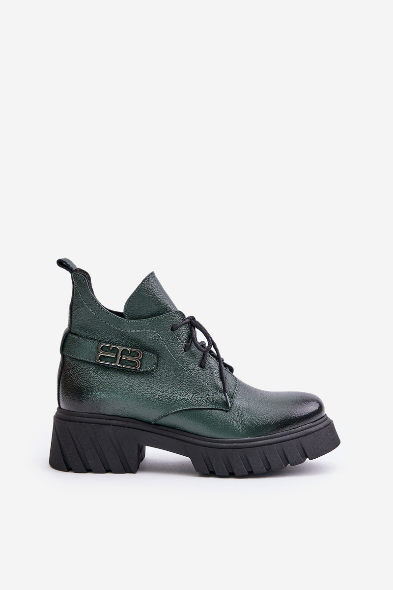 Zazoo 60483 Dámské Kožené Kotníkové Boty S Nízkým Svrškem Zateplené Tmavě Zelené