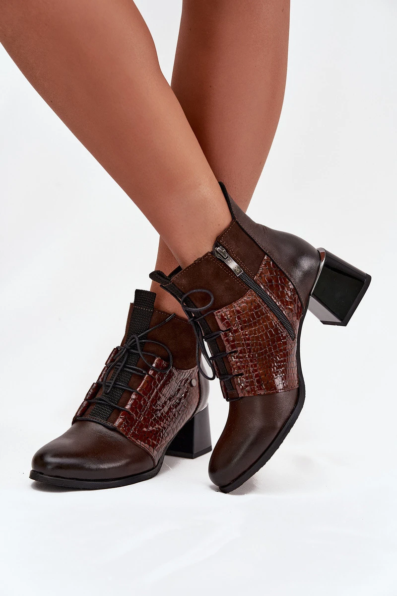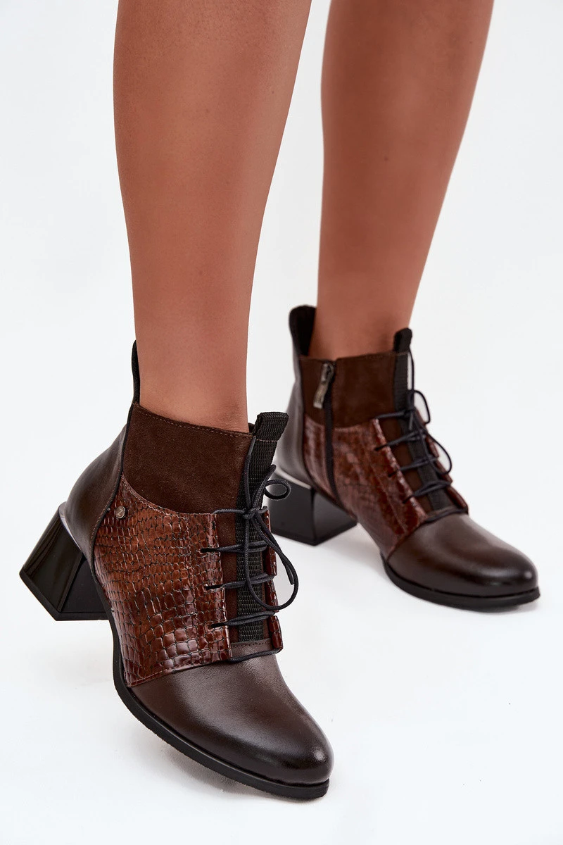Zazoo 60503 kožené kotníčkové boty na podpatku vyhřívané čokoládové