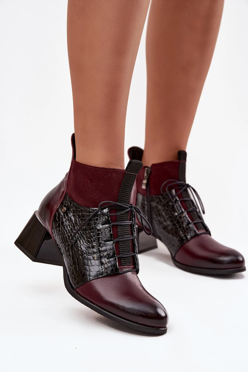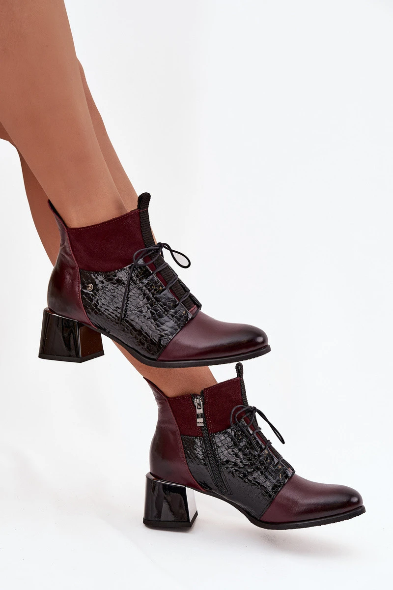 Zazoo 60503 kožené kotníkové boty na podpatku vyhřívané bordó