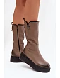 Zazoo 70121 Kožené dámské kozačky s vlnou olivové