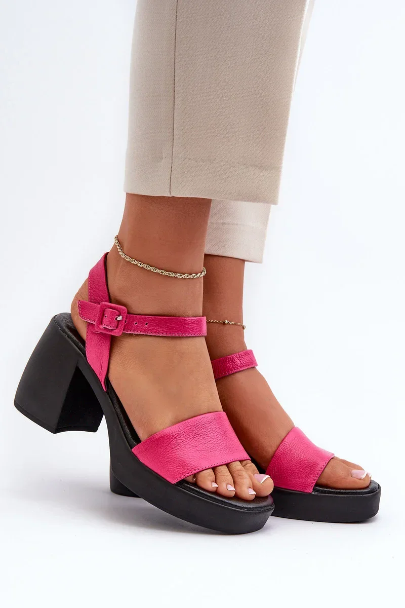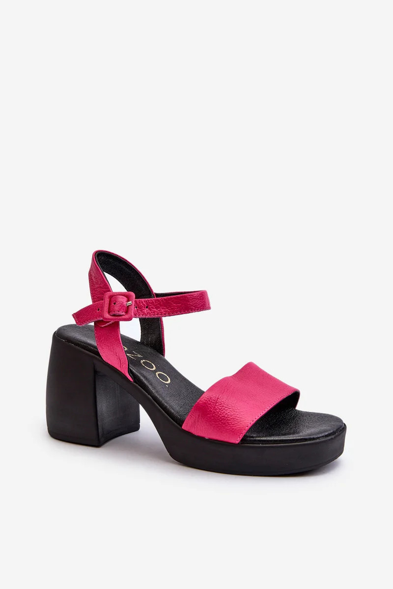 Zazoo Dámské kožené sandály na bloku fuchsie