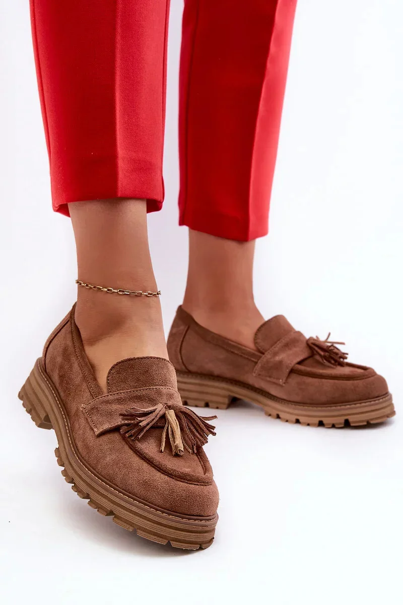 Zazoo Dámské semišové mokasíny s třásněmi, hnědé