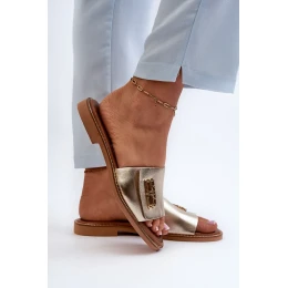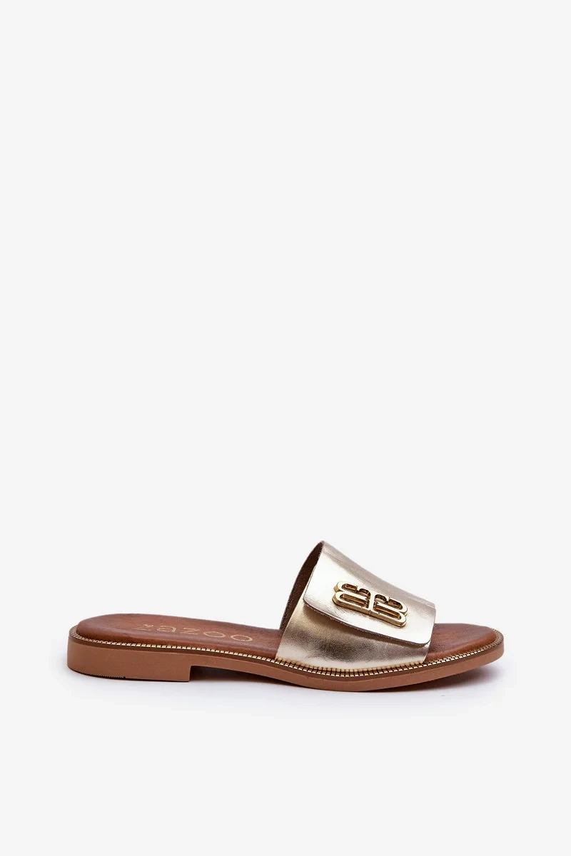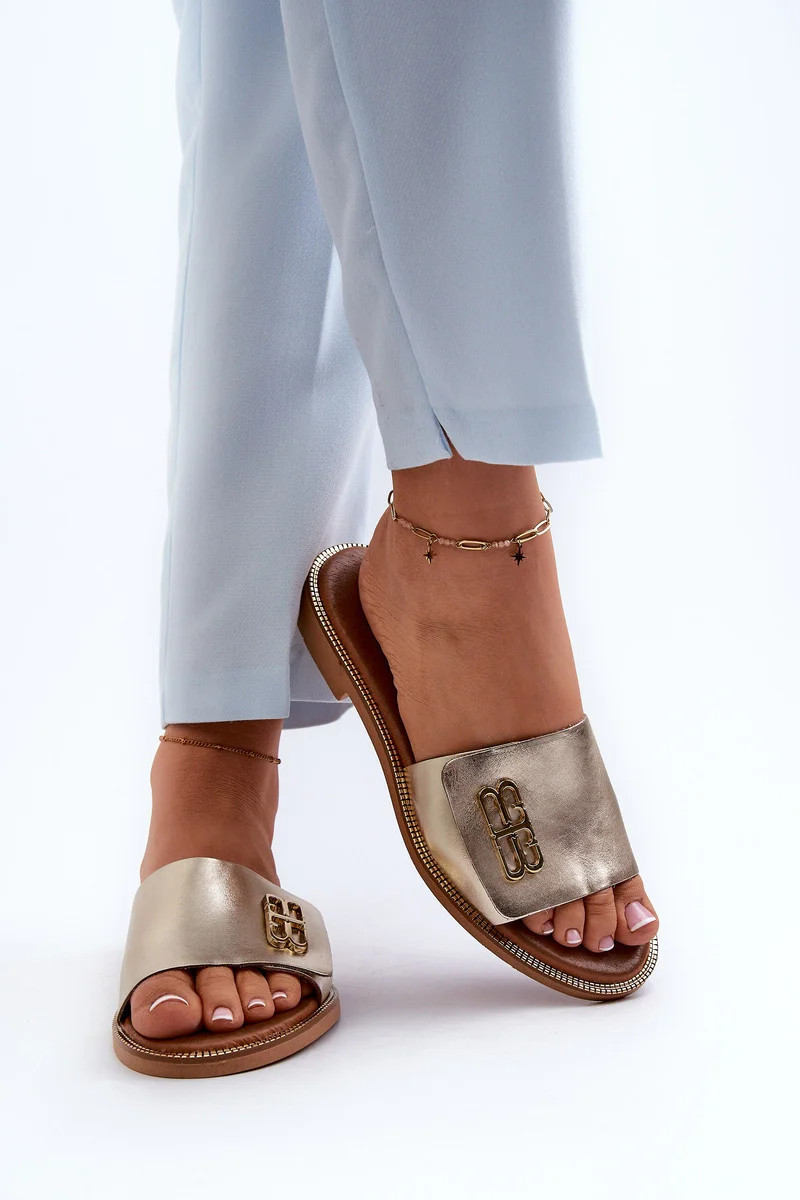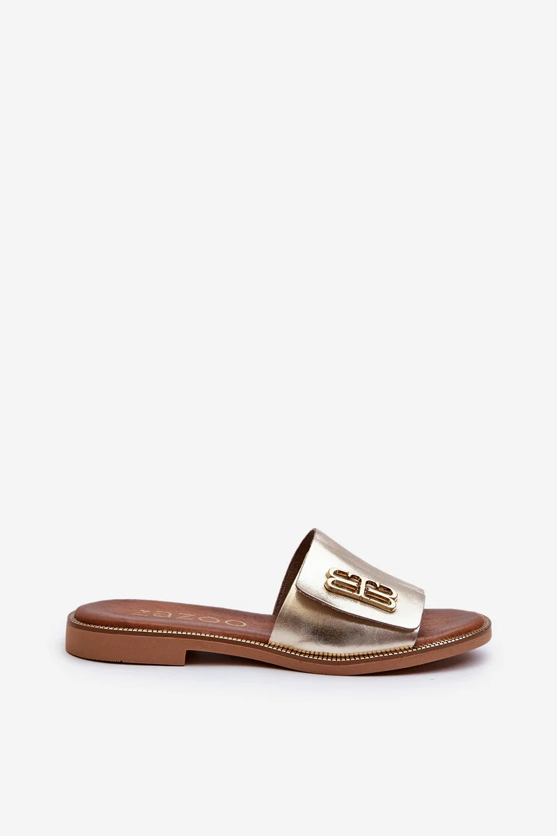 Zazoo Elegantní dámské kožené pantofle zlaté