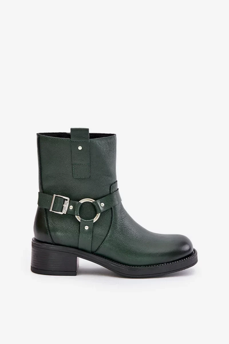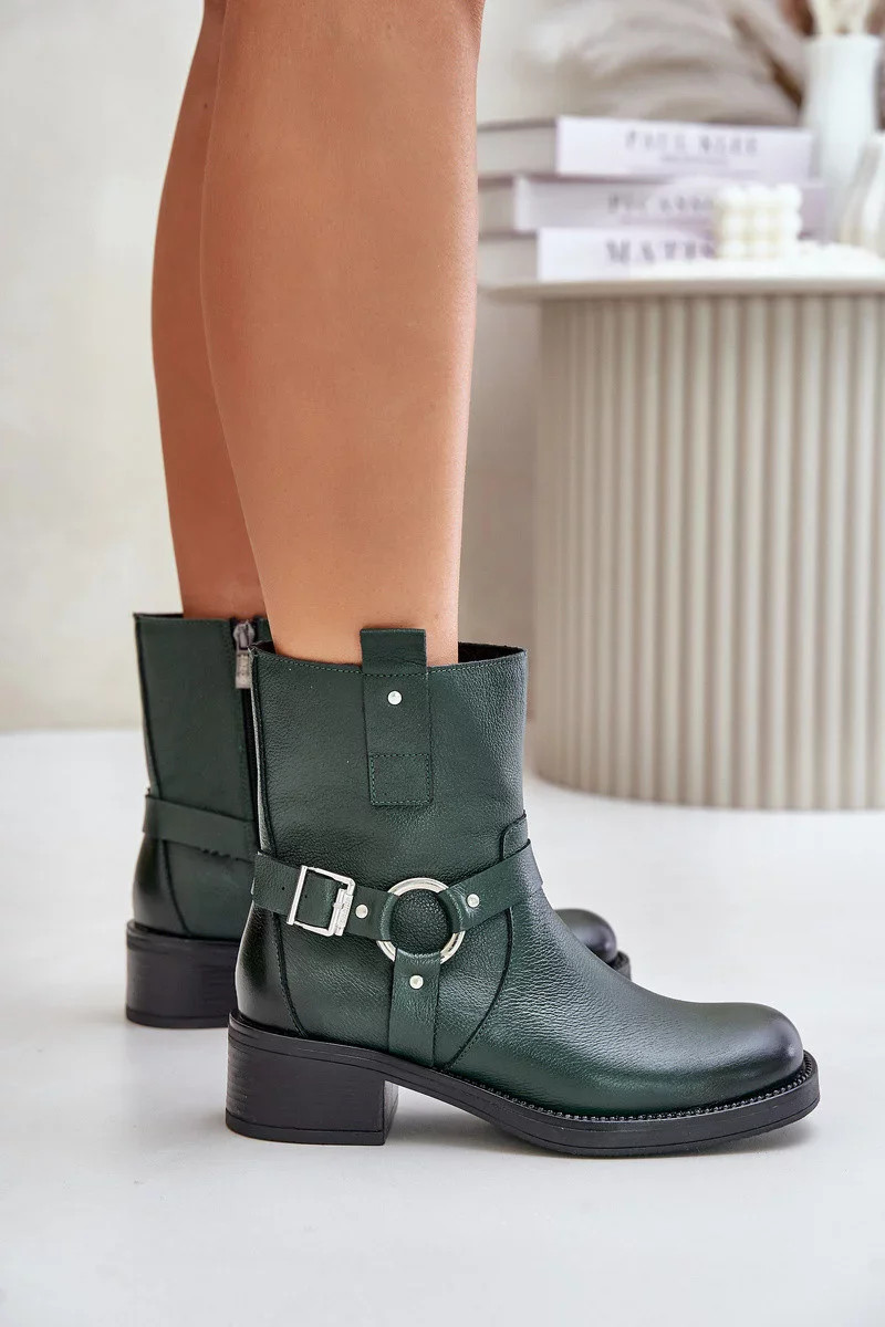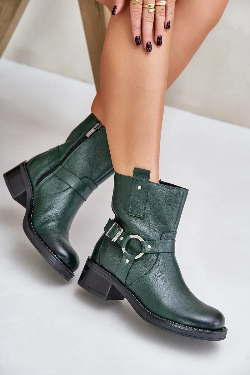 Zazoo Kožené Kotníkové Boty Na Nízkém Podpatku Zateplené Tmavě Zelené