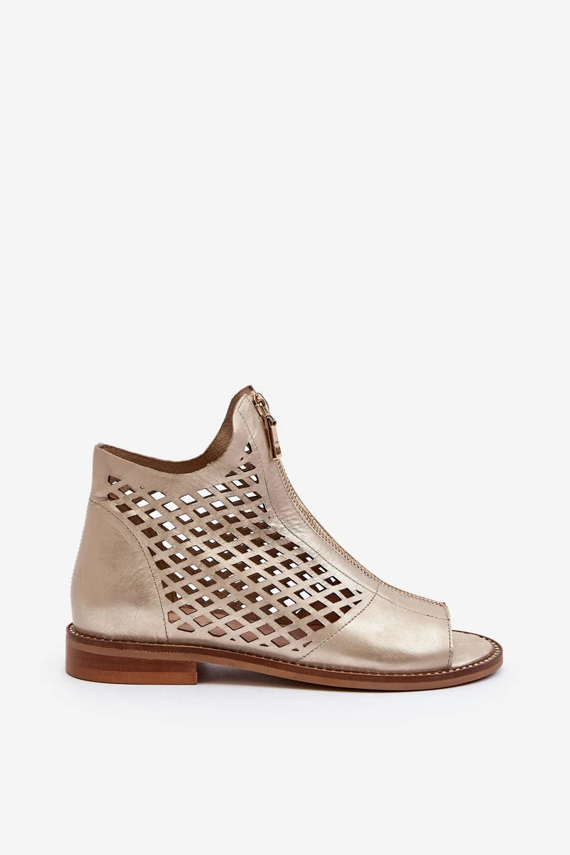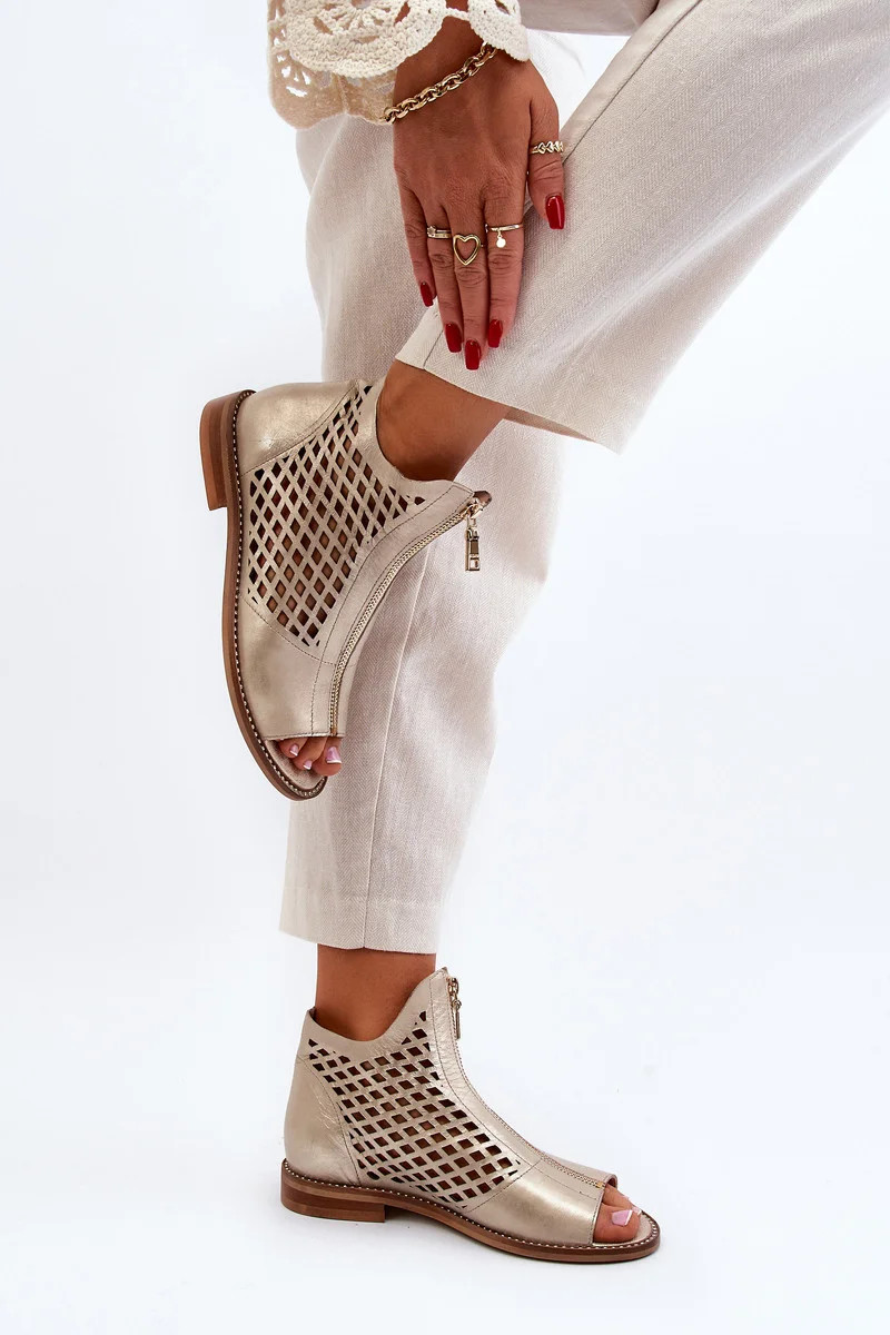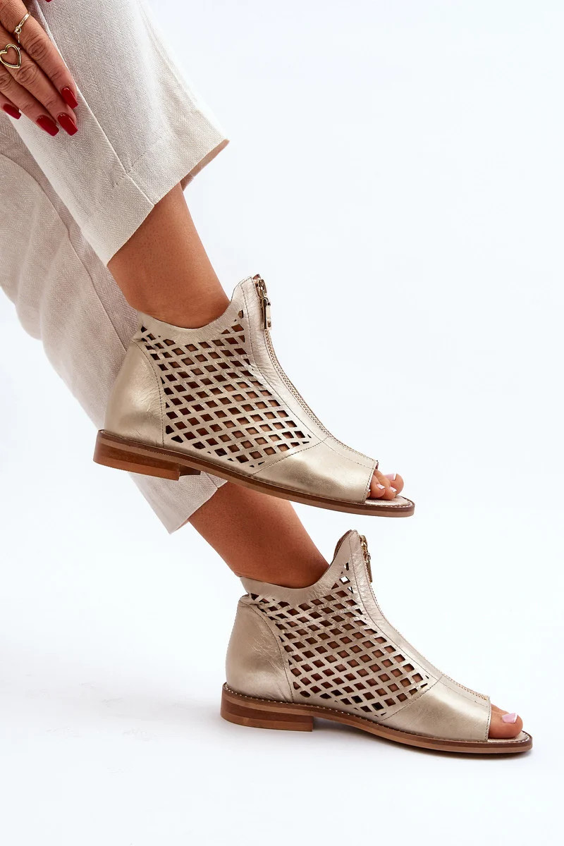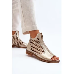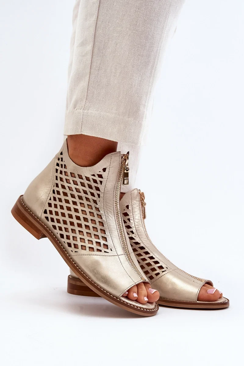 Zazoo kožené prolamované sandály se zipem, zlaté