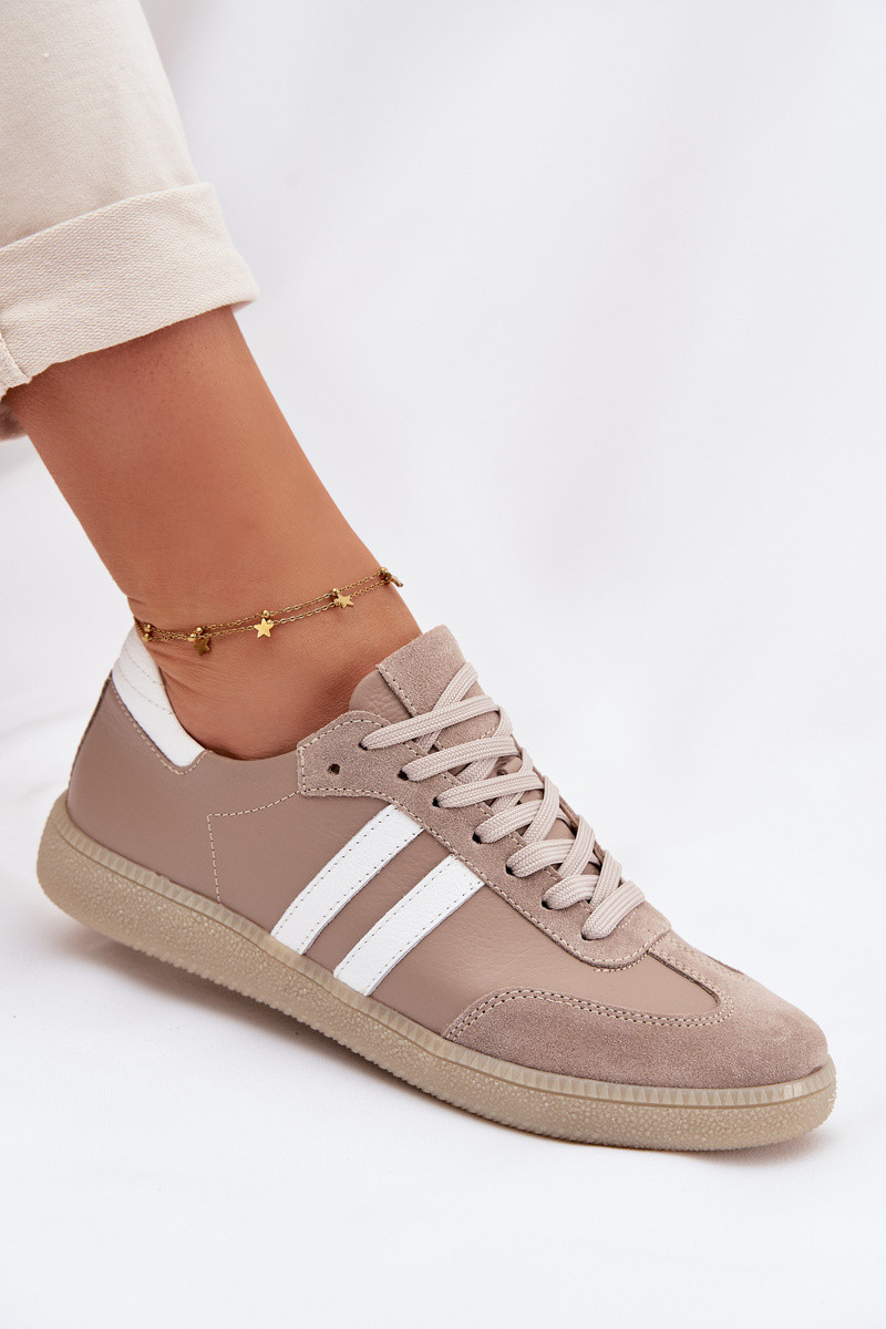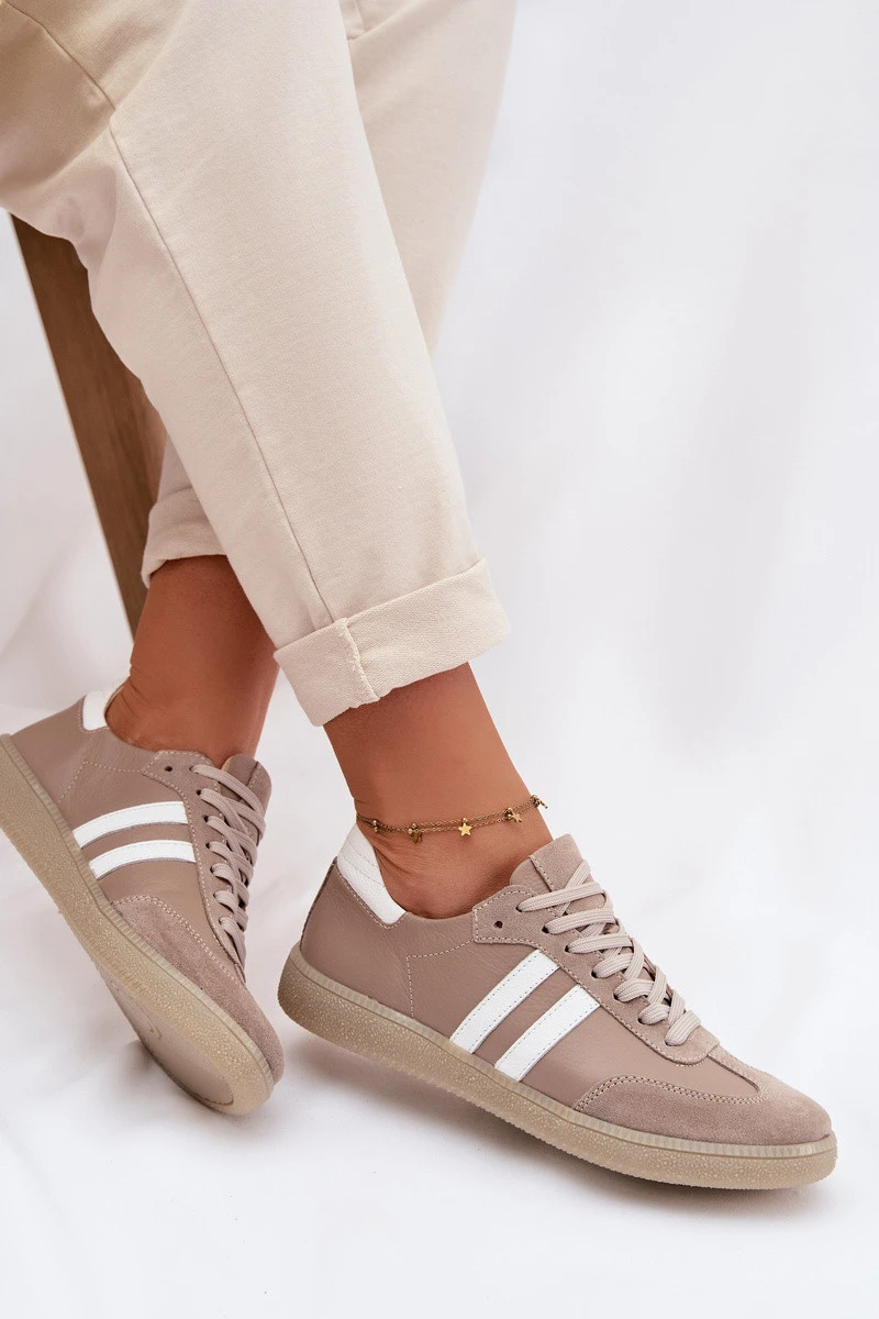 Zazoo N1068 Kožené Nízké Dámské Tenisky Tmavě Béžové