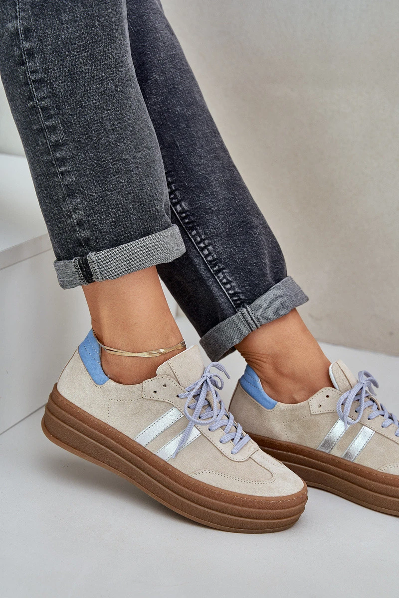 Zazoo N1068S4 Dámské semišové sneakersy na platformě béžové