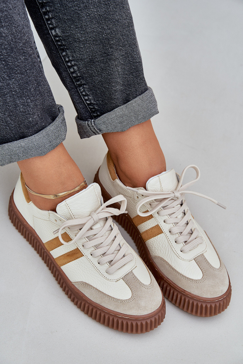 Zazoo N1068S6 Kožené Nízké Sneakersy Dámské Na Platformě Béžové