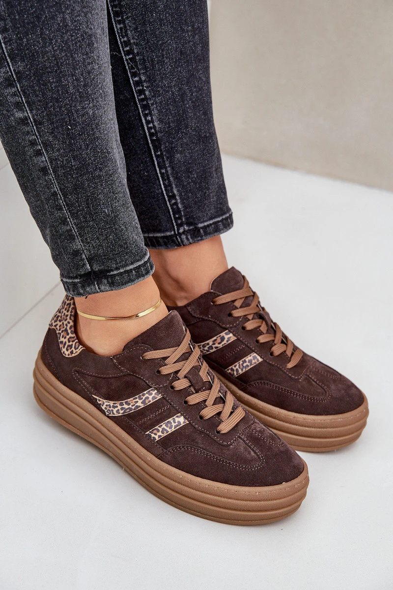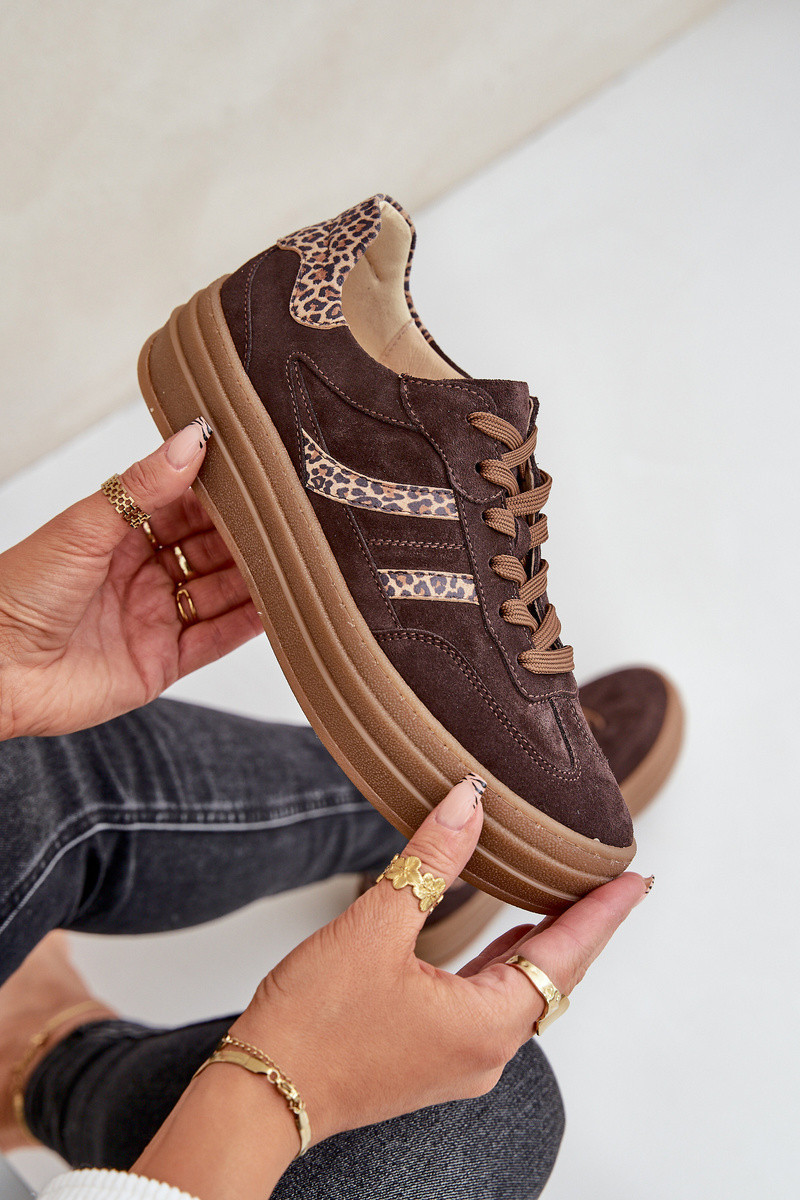 Zazoo N1176 Semišové Sneakersy Na Platformě Leopardí Čokoládové