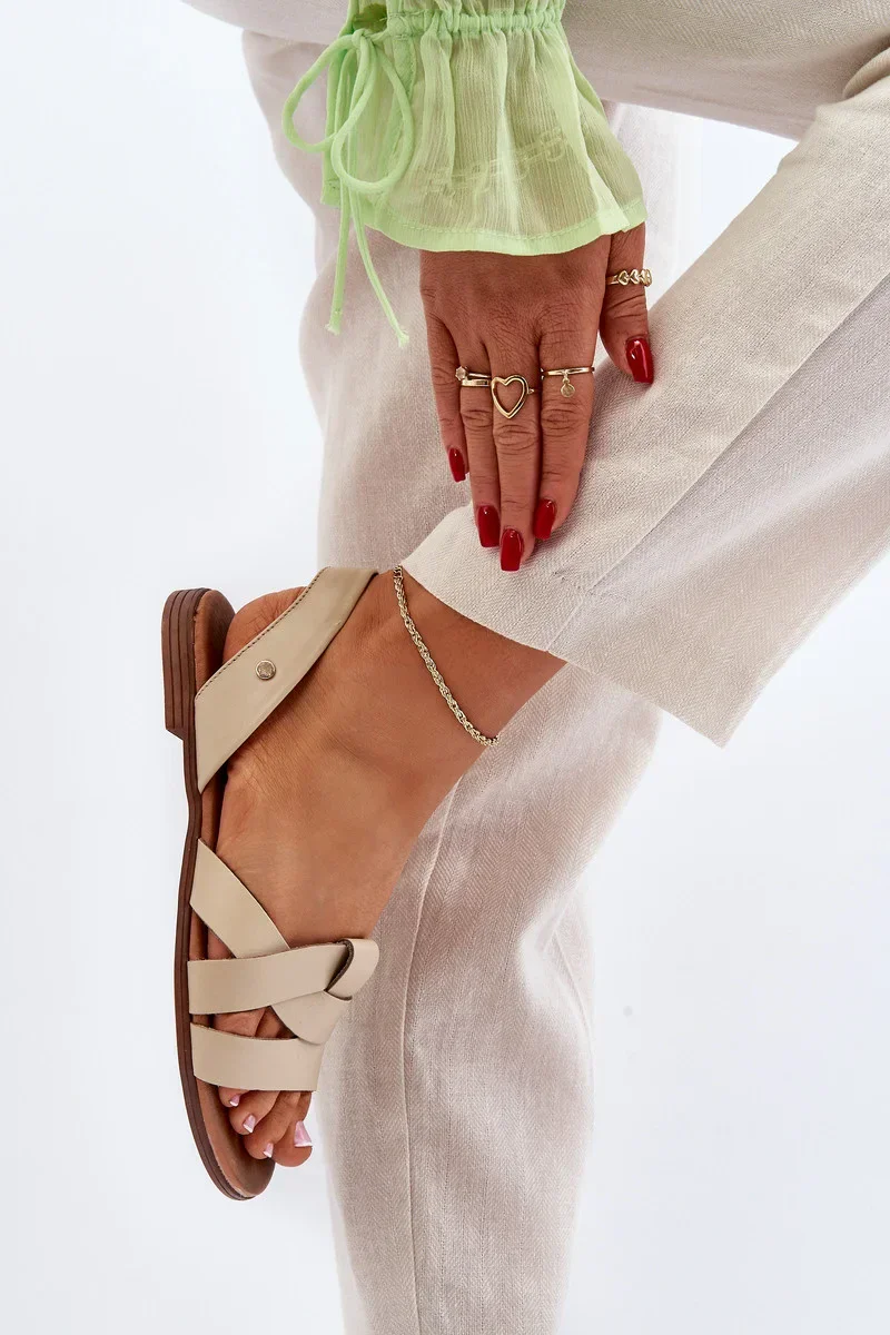 Zazoo Pohodlné kožené nazouvací sandály, béžová