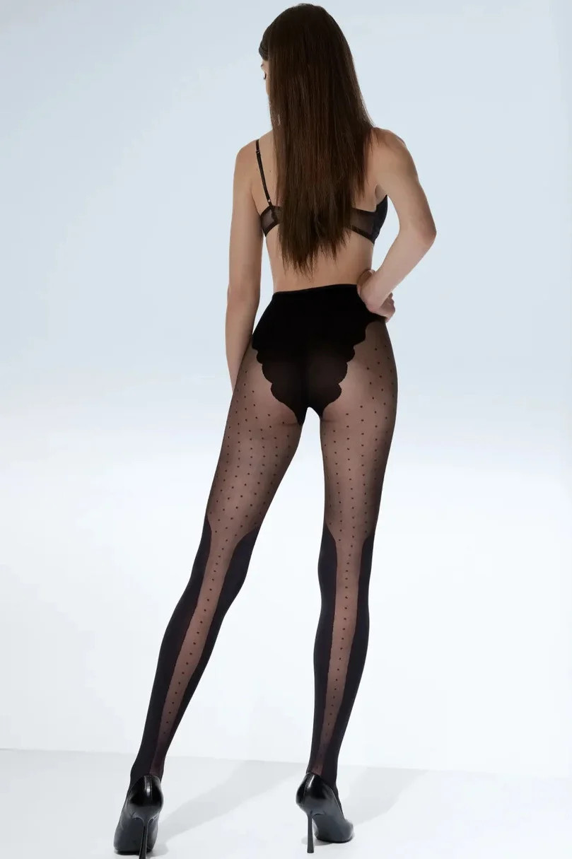 Dámské vzorované punčochové kalhoty vyrobené z dvojitě kroucené příze, která zaručuje výjimečnou odolnost. Díky použití 3D systému jsou punčocháče pružnější a příjemnější na dotek. Ozdobná kalhotková část. Všitý klín.