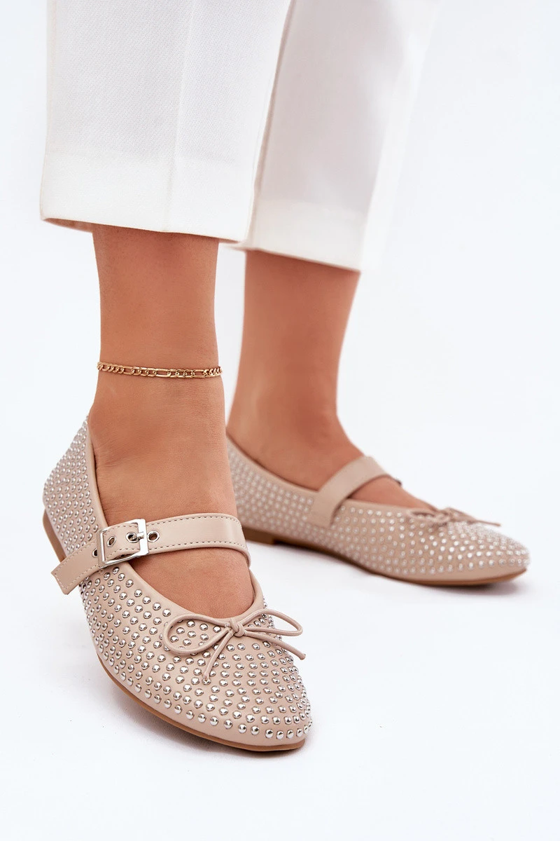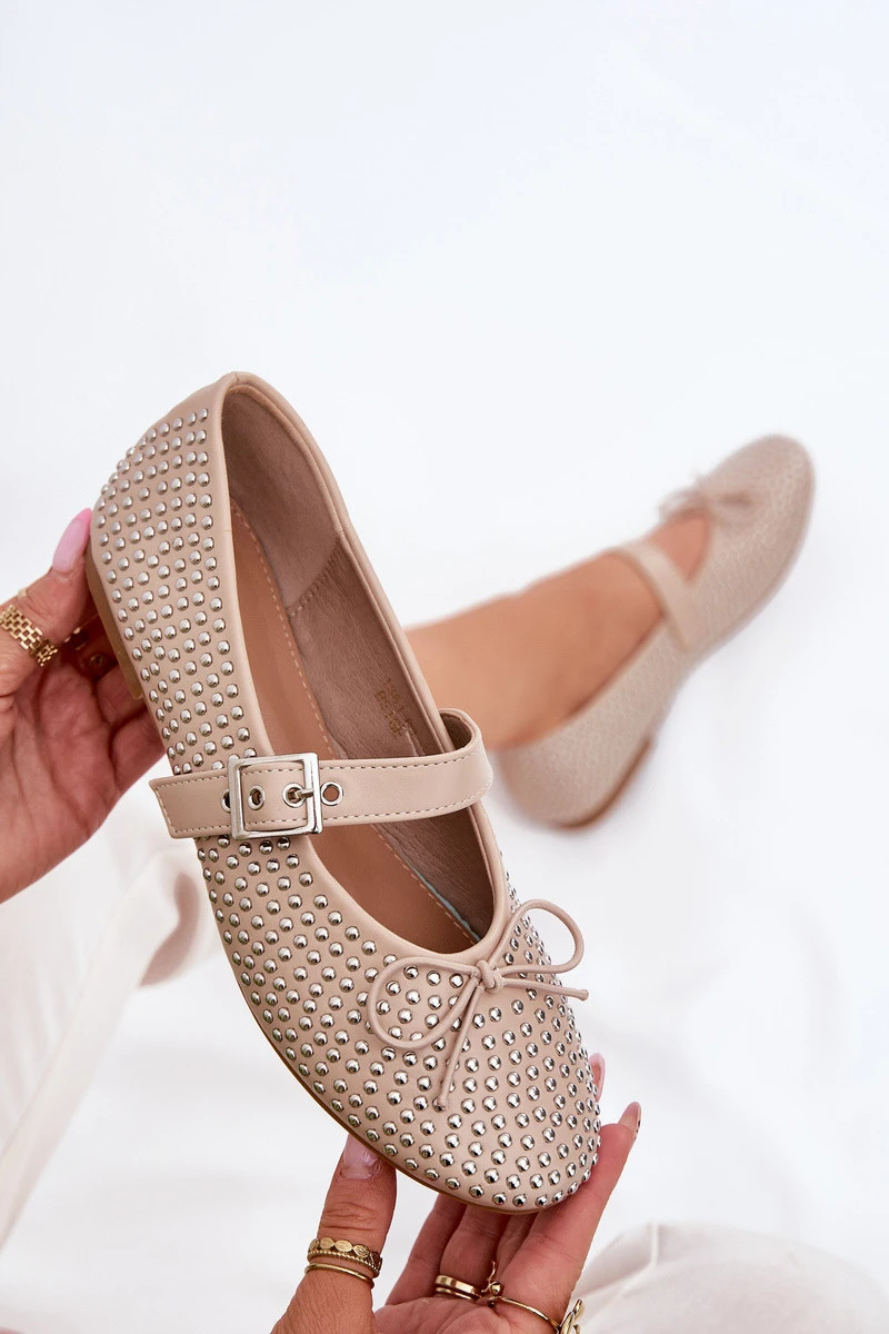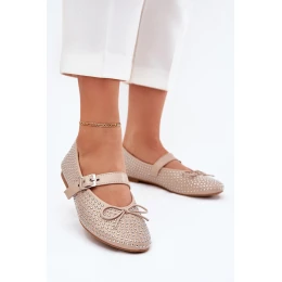 Zdobené baleríny s mašlí a páskem béžové model 21699662 - Boto