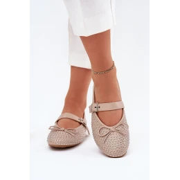 Zdobené baleríny s mašlí a páskem béžové Zdivisa