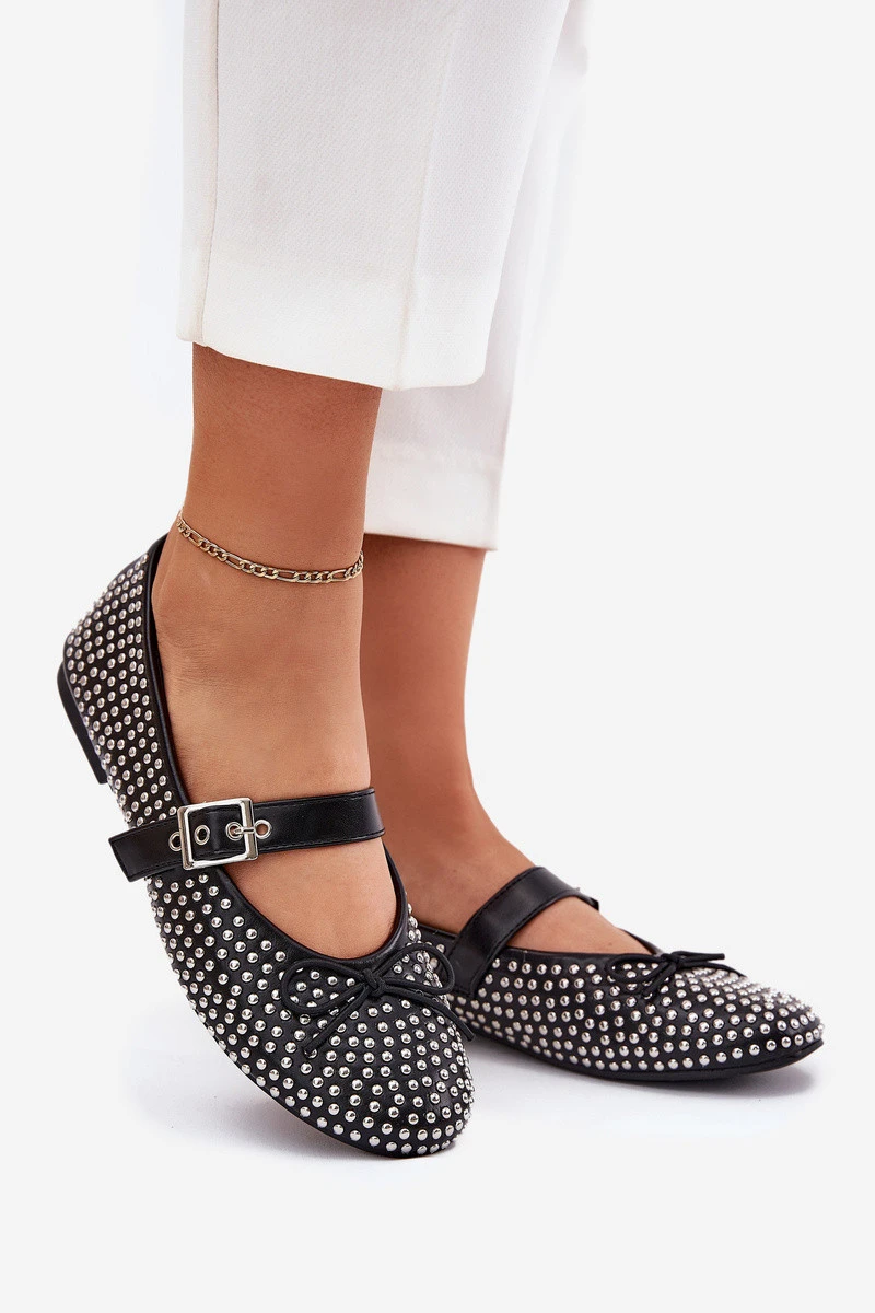 Zdobené baleríny s mašlí a páskem černé model 21699655 - Boto